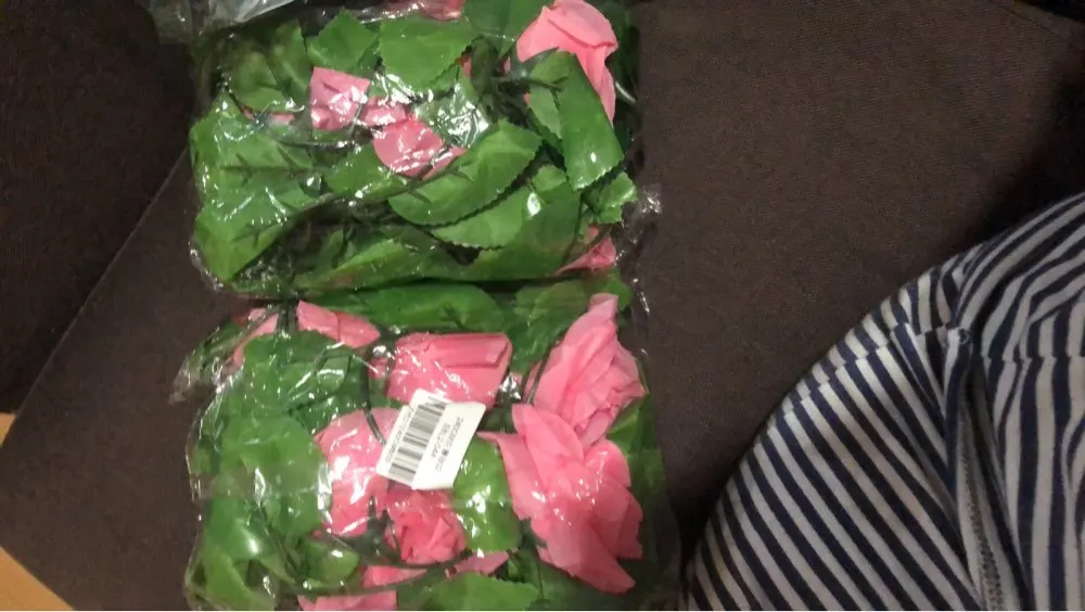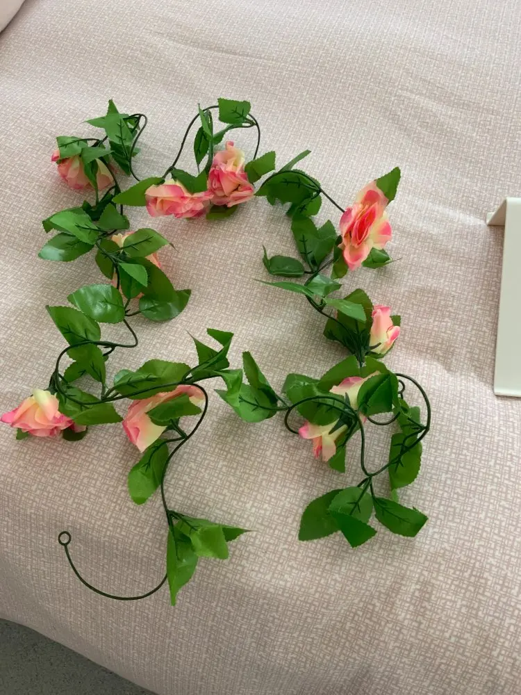 Милая розовая лоза. Определенно фальшивый вид, но он все еще очень красивый. Сами цветы сжимаются из упаковки, но это нормально, если вы не будете выглядеть слишком близко. Лоза имеет круг на любом конце, так что вы можете подключить его к вещам и легко повесить его. Доставка была быстрой-в целом я доволен продуктом
