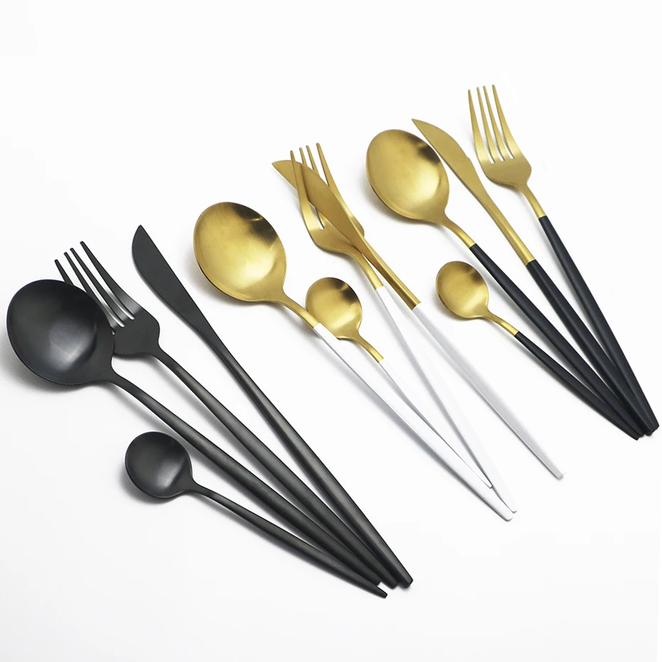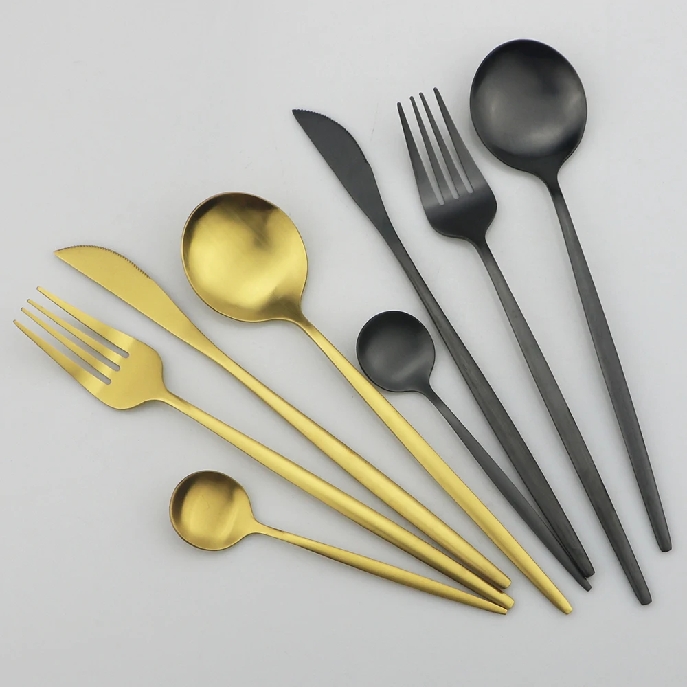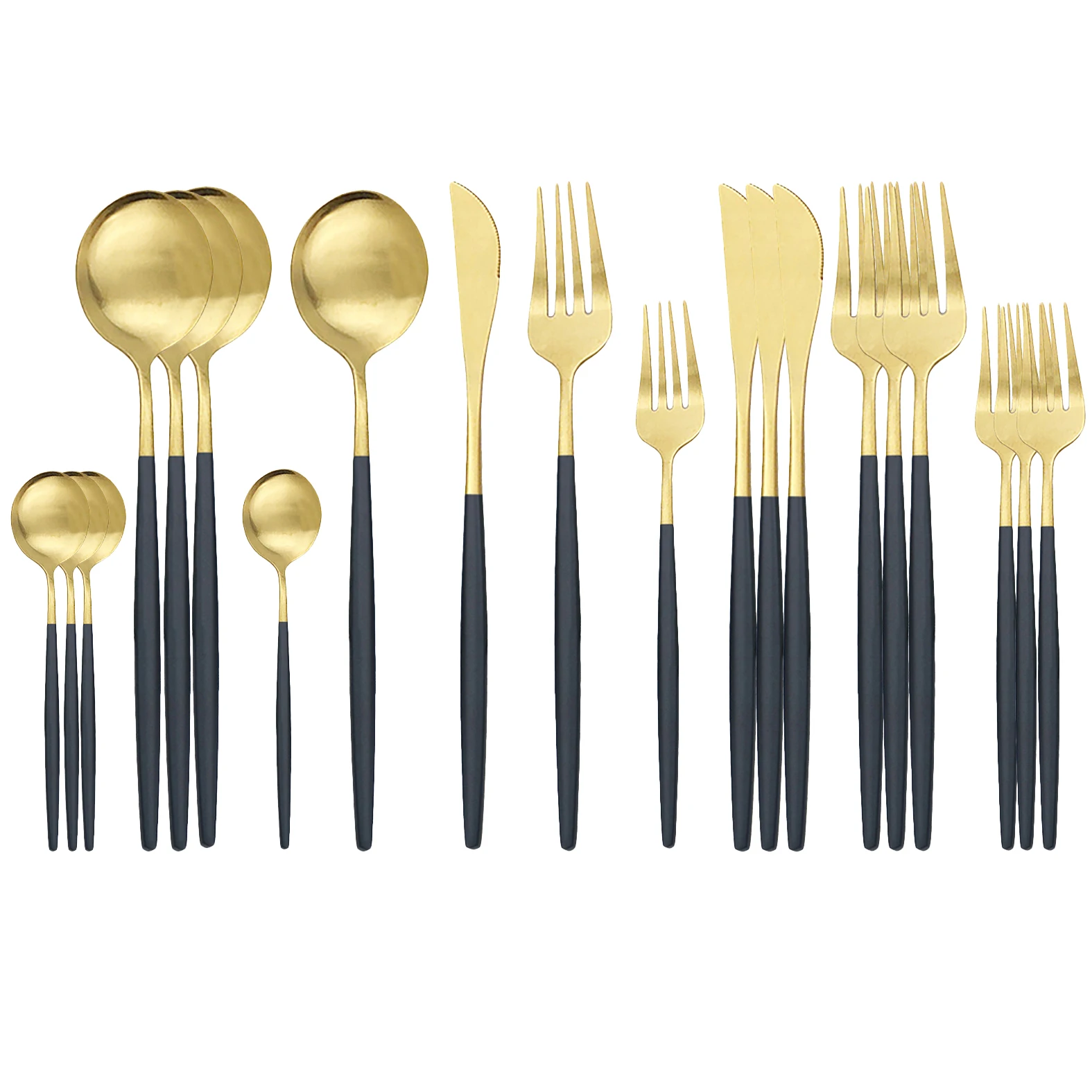 Набор столовой посуды из 20 предметов, набор столовых приборов черного и золотого цвета, матовый нож, столовая посуда из нержавеющей стали, набор столовых приборов