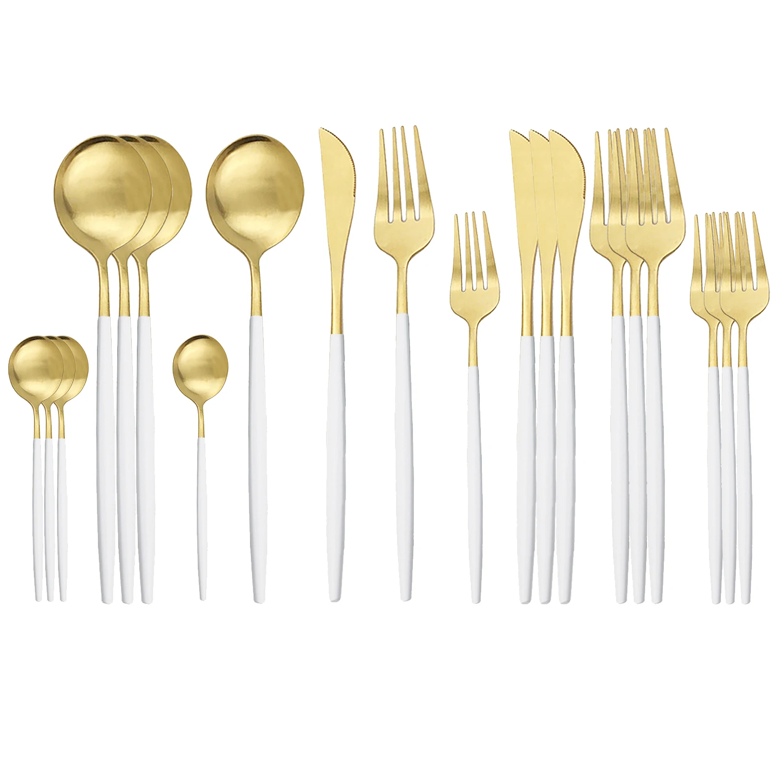 Набор столовых приборов из матового белого золота, ложка, вилка, ст...