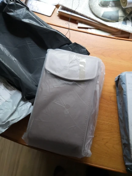 пришел заказ быстро, упаковано хорошо. Размер не большой, но телефон помещается, для сравнения фотографии делаю рядом с ручкой. шнурок тонкий