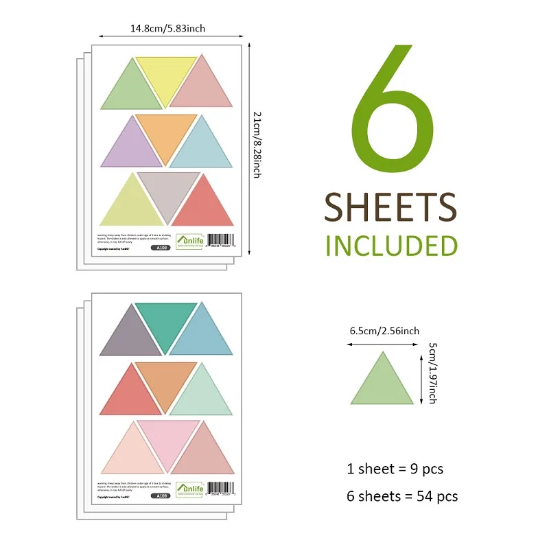 Товар: 54 шт многоцветные Мультяшные треугольные наклейки на стену