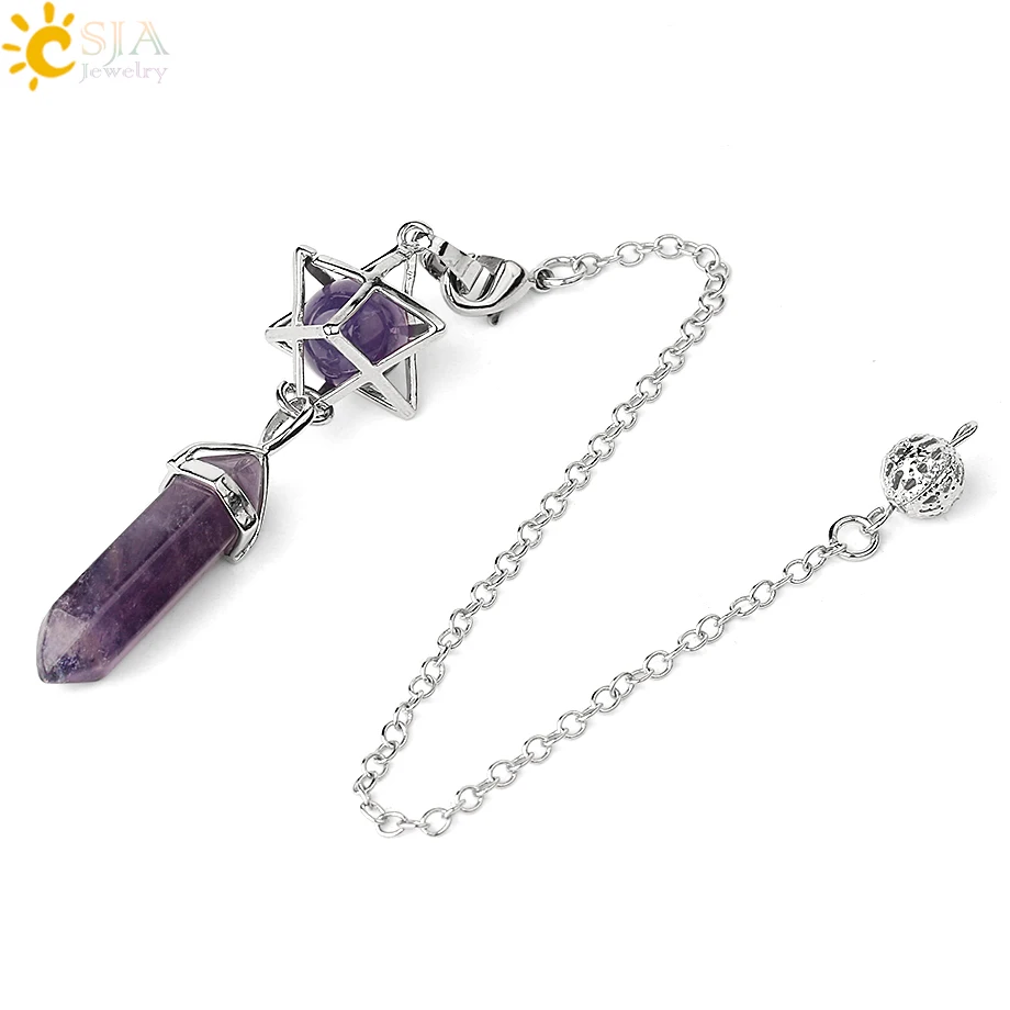 CSJA Натуральный Камень кварцевый маятник для приданого гадания шестиугольный Кристалл Merkaba Esotericism Shuttle духовный маятник G517