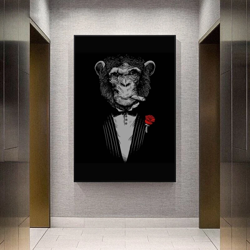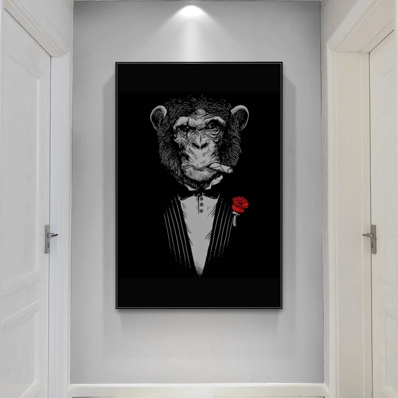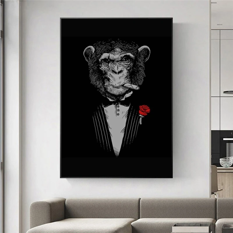 Абстрактные стены Искусство курительная обезьяна холст настенные картины художественные плакаты и принты крутая обезьяна в костюме Настенная картина домашний декор