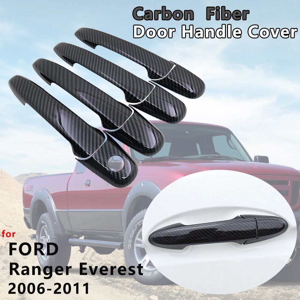 Глянцевая черная крышка дверной ручки из углеродного волокна, Автомобильная крышка, аксессуары для Ford Ranger Everest 2006 2007 2008 2009 2010 2011
