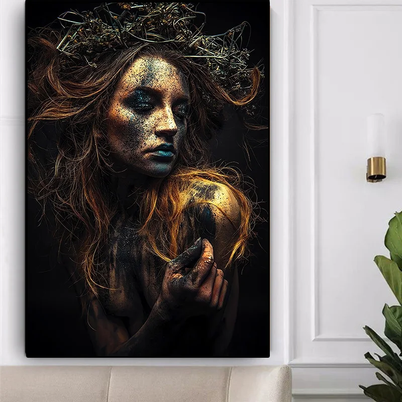 Черно-Золотая картина с татуировкой для женщин, холст, постеры и принты, Настенная картина, Скандинавская картина для гостиной, домашний декор, квадраты