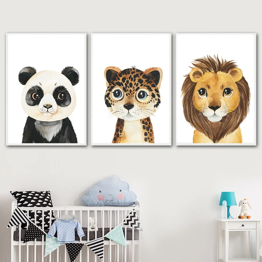 Настенная картина с жирафом, львом, слоном, зеброй, леопардом, пандой для детской комнаты, Картина на холсте, Постер в скандинавском стиле, настенные картины для декора детской комнаты