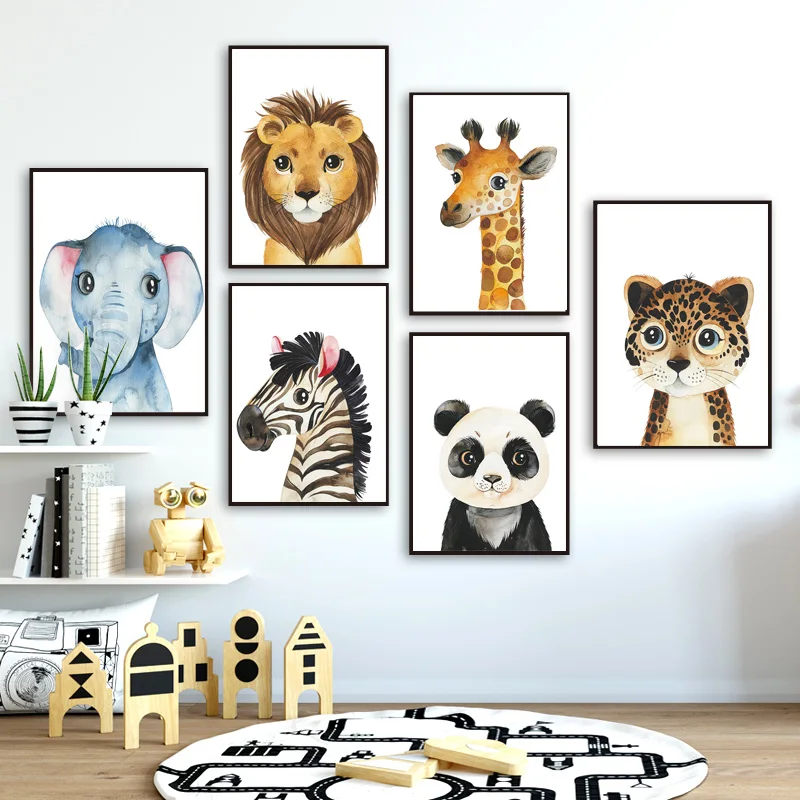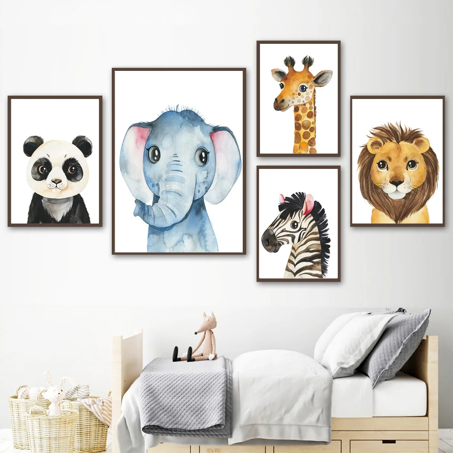 Жираф, слон, Лев, кролик, медведь, детская настенная живопись, холс...