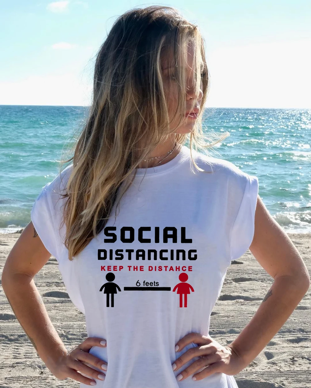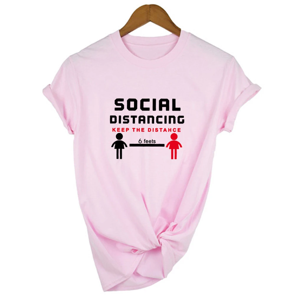 Женская футболка с рисунком, летняя футболка с коротким рукавом и надписью «Keep The Distance 6 Feets», 2020