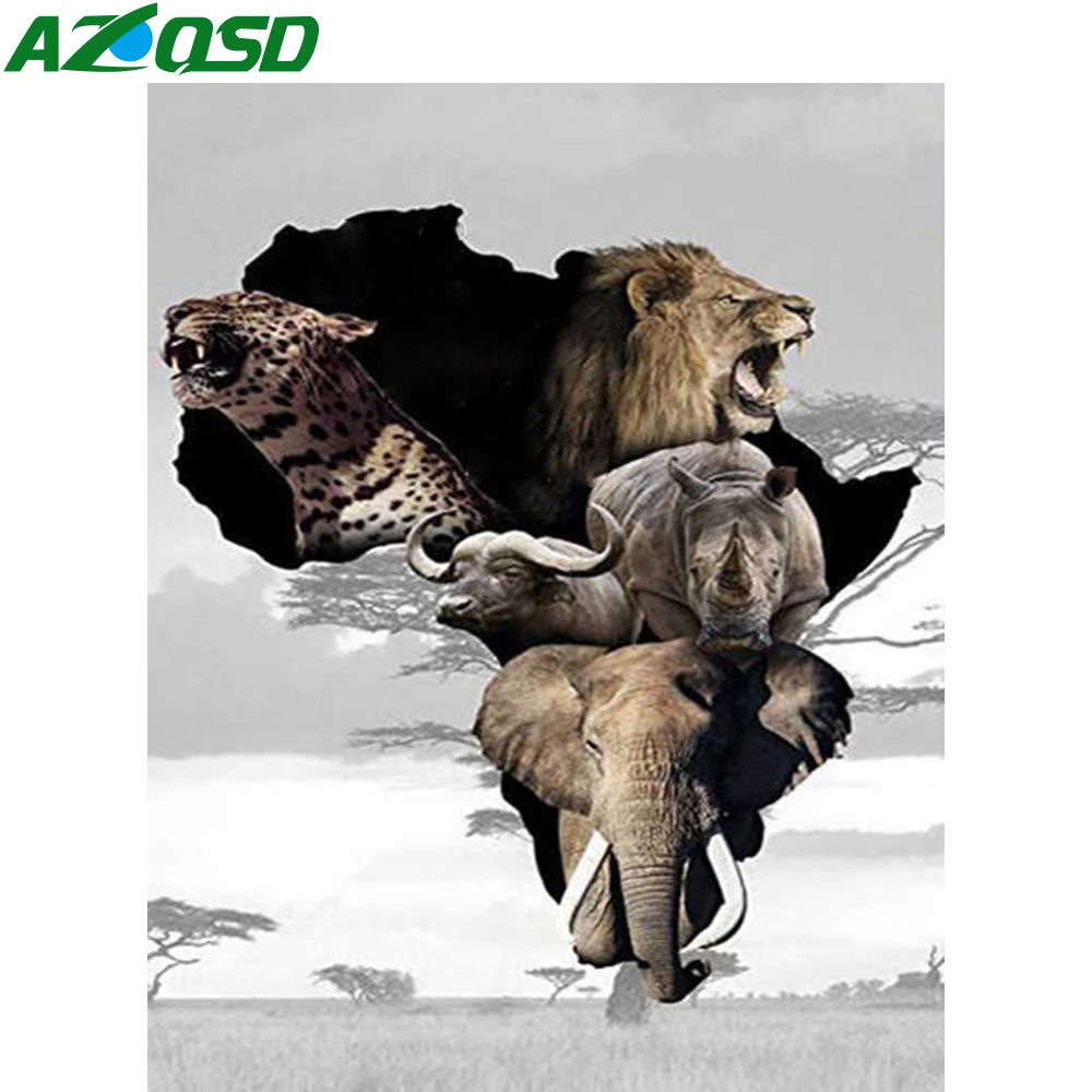 AZQSD Алмазная картина слон леопард полный квадраткруглая дрель Алмазная вышивка животное вышивка крестом домашний Декор подарок
