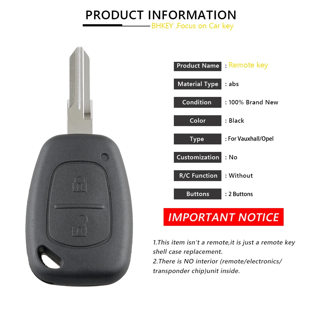 BHKEY для Renault, чехол для ключа с 2 кнопками, чехол для ключа с дистанционным управлением для VauxhallOpel Vivaro Renault Movano Trafic Renault Kangoo