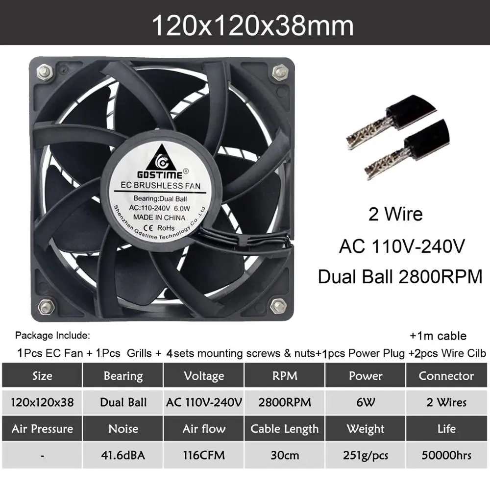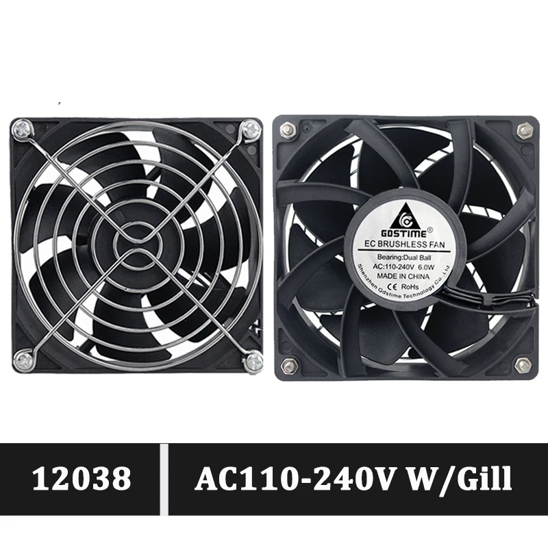 Высокоскоростной вытяжной вентилятор Gdstime 12038 120 мм x 38 мм, 110 В переменного тока, 120 В, 220 В, 240 в, в, охлаждающий вентилятор для корпуса сервера с защитной решеткой