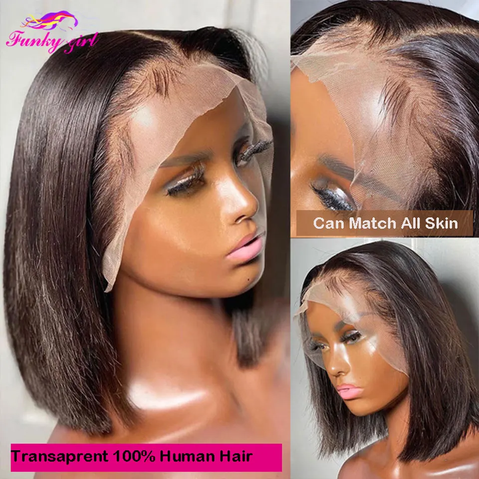 Прозрачные прямые короткие парики из человеческих волос Боб, предва...