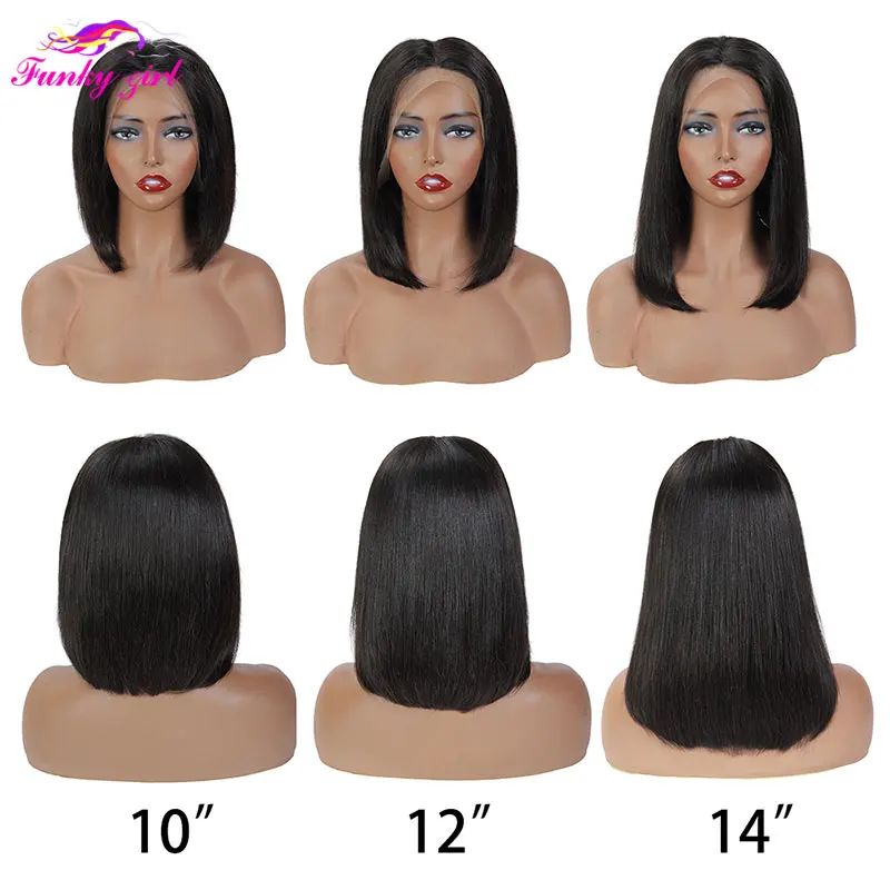 Perruques de cheveux humains avant de lacet court perruque de cheveux raides péruviens 13x4 perruque frontale de dentelle de cheveux de Remy pour les femmes noires 150% densité 15 см