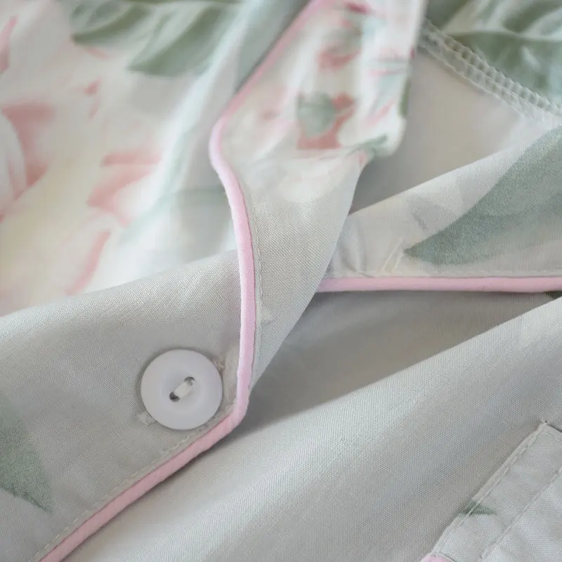 Пижама женская из хлопка и шелка, с длинным рукавом и цветочным принтом