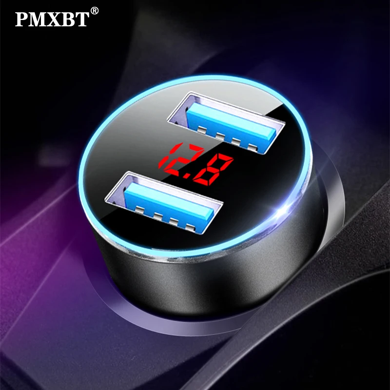 Автомобильное зарядное устройство Mini USB для iPhone 11 Pro, зарядное устройство для быстрой зарядки со светодиодным дисплеем, 3,1 А, двойной USB-адаптер для зарядки в автомобиле