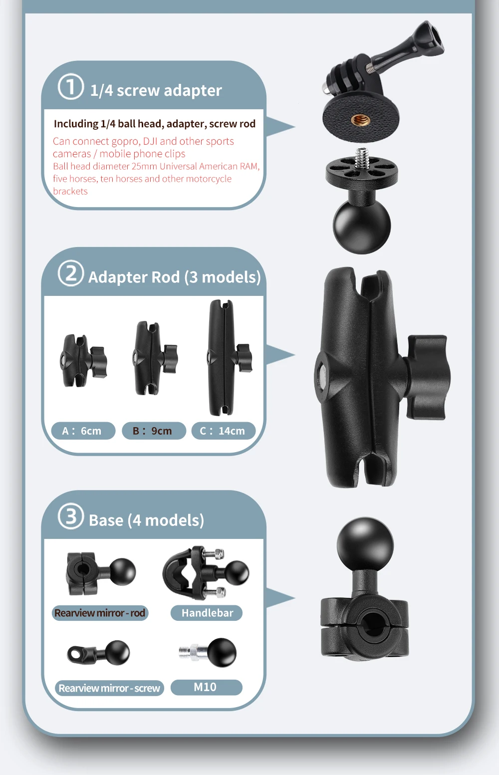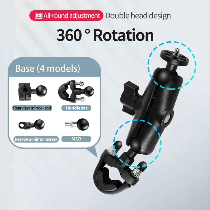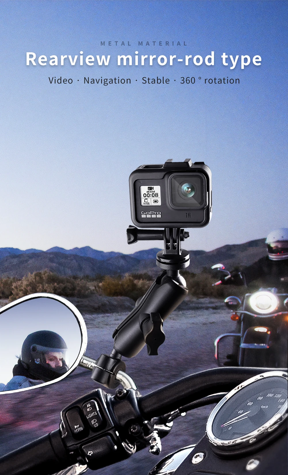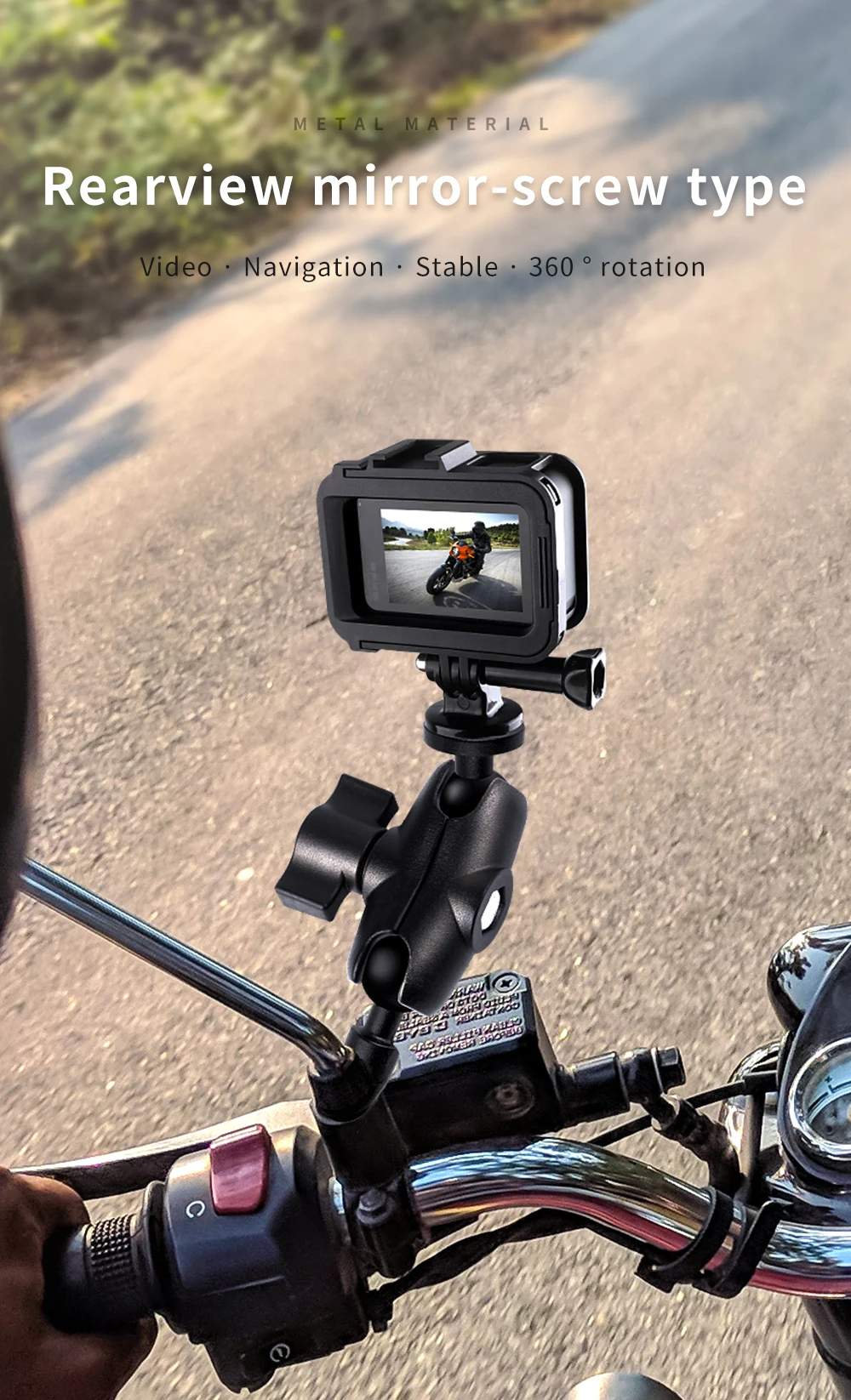 Держатель GPS для телефона с шаровой головкой, черный Байкерский держатель с отверстием 10 мм, подставка для автоцикла для Gopro 10, 9, 8, 7, 6, 5, 4, Xiaomi, iPhone
