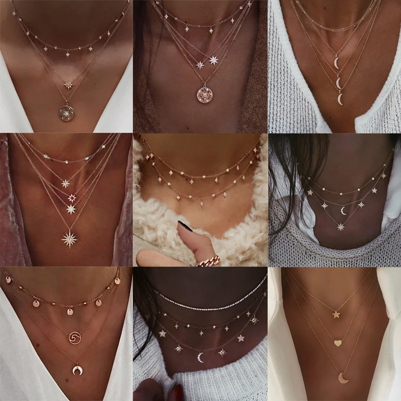 Ожерелье женское многослойное с кристаллами, в стиле бохо