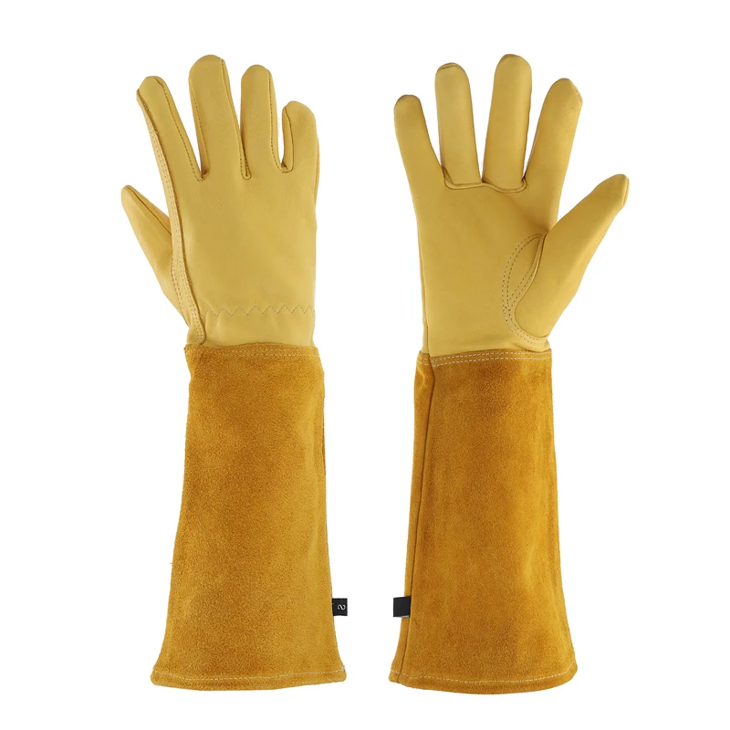[Полностью защитные кожаные садовые перчатки]: гетры длиной до локтя обеспечат защиту до локтя. Удлиненный манжет из воловьей кожи защищает предплечья от порезов и царапин, длинные перчатки для обрезки позволяют безболезненно избавляться от роз.