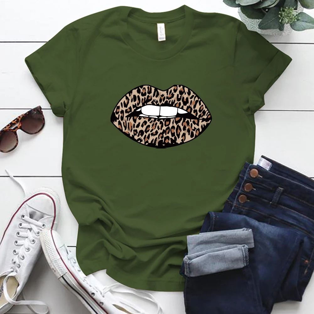 Женские футболки с принтом больших губ и леопардовым принтом, летние Забавные футболки с круглым вырезом для дам, женские футболки Harajuku, топы с круглым вырезом, футболки для женщин
