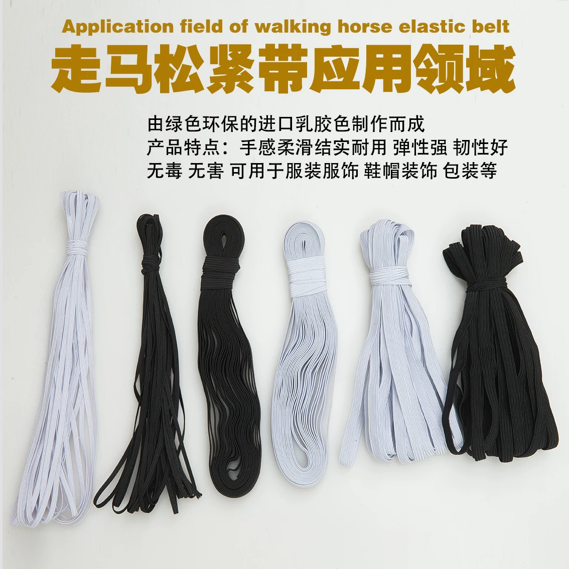 [Продукт] Эластичная резинка для самостоятельной сборки; Резиновая лента с манжетами; Подвесной ремень с ушками[Материал] Латексная пряжа, полиэфирная пряжа, полипропиленовая пряжа[Стиль] Модный[Использование] Одежда, одежда, домашний текстиль, маски[Упаковка] Индивидуально упакованные[Применимые люди] Все[Длина] 5 м/10 м[Стиль цвета] Черный, белый (отбеленный)