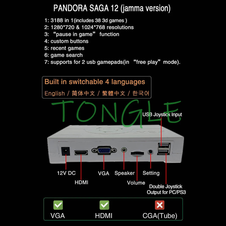 Pandora box 12 геймпад набор 3188 в 1 jamma доска 3d игры usb джойстик контроллер кабель-адаптер HDMI выход для ТВ и аркадного монитора.