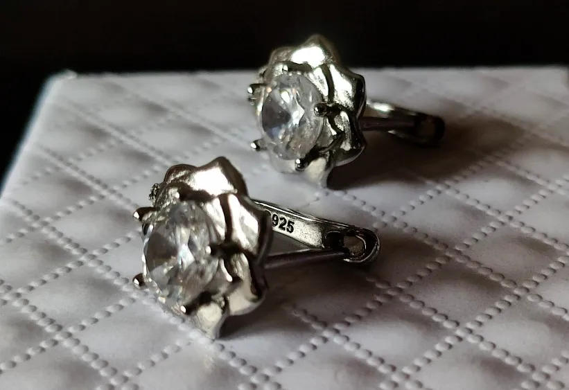 серёжки прилетели быстро две недели примерно,стёклышко блестит серебро серебрит.