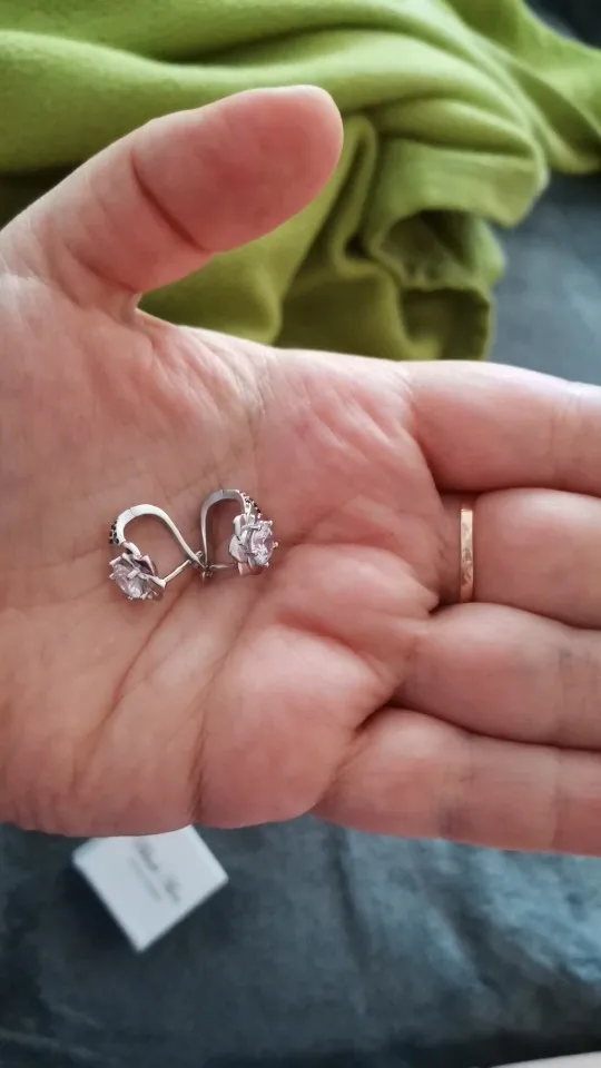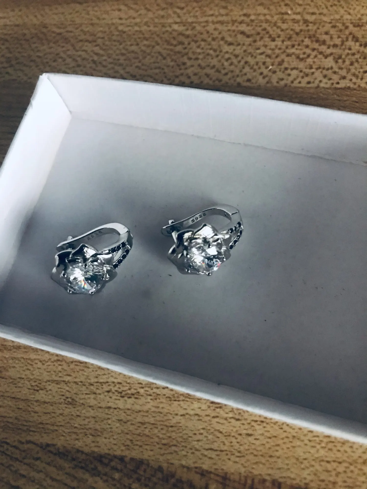 красивые сережки. 4 ставлю из-за того, что отсутствует один маленький черный камешек. не особо видно, но всё же. пришло за месяц, отслеживалось