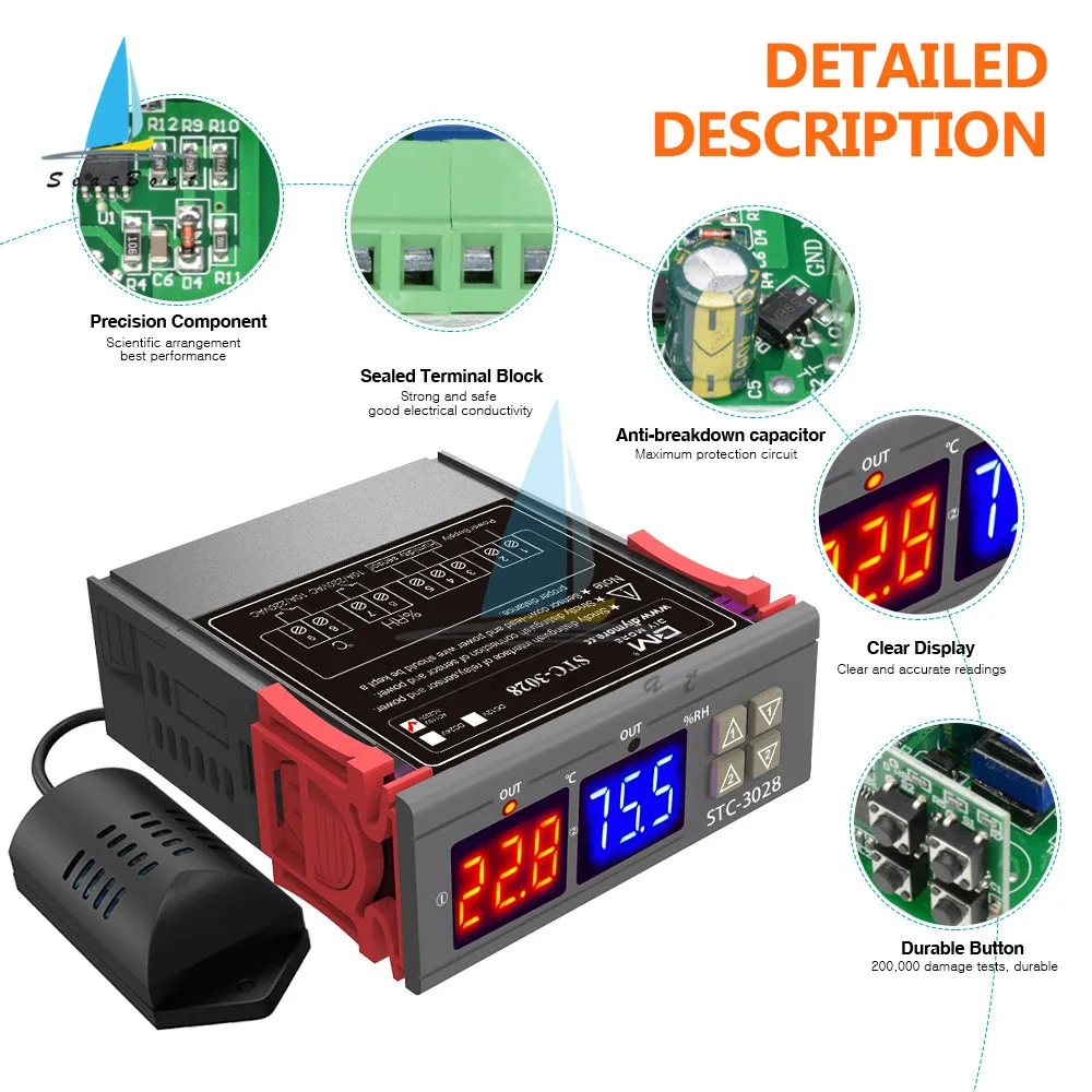 Термостат для домашнего холодильника, цифровой контроллер температуры и влажности, STC-3028
