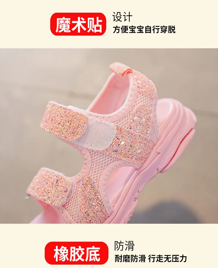 Детские сандалии с блестками, сетчатые дышащие кроссовки принцессы,...