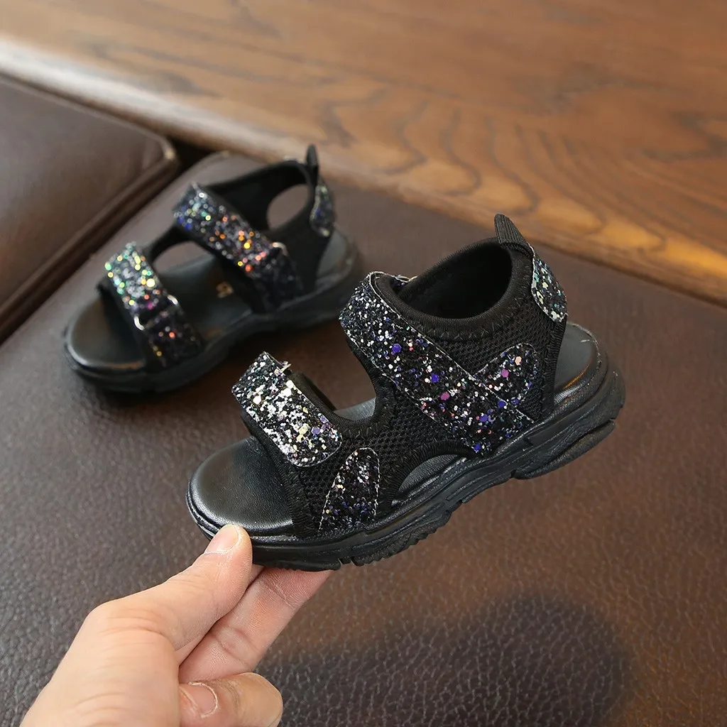 Детские сетчатые спортивные кроссовки с блестками для маленьких девочек и мальчиков; СандалииОбувь