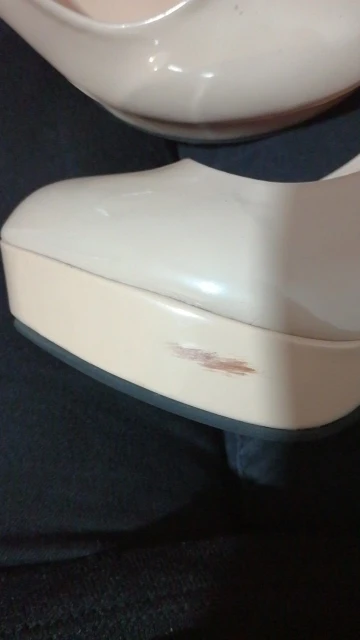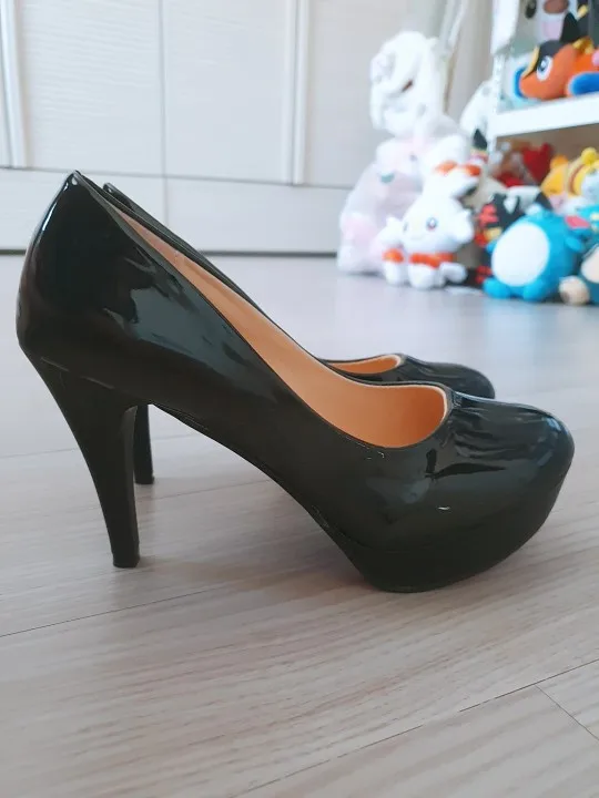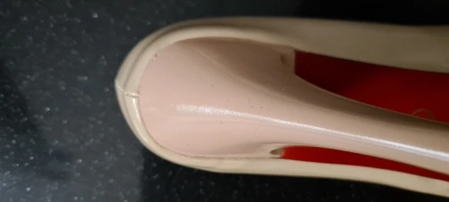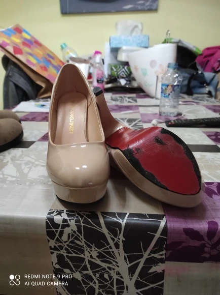 Каблуки имеют красную подошву, которая является прохладной. Они идеально сидят и не слишком повреждены по бокам.
