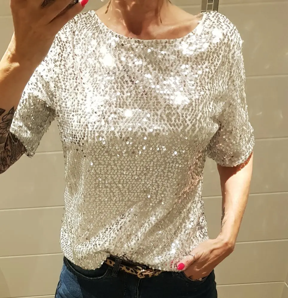 Женская летняя футболка с блестками, однотонные свободные топы с полурукавами, пуловеры, женские футболки
