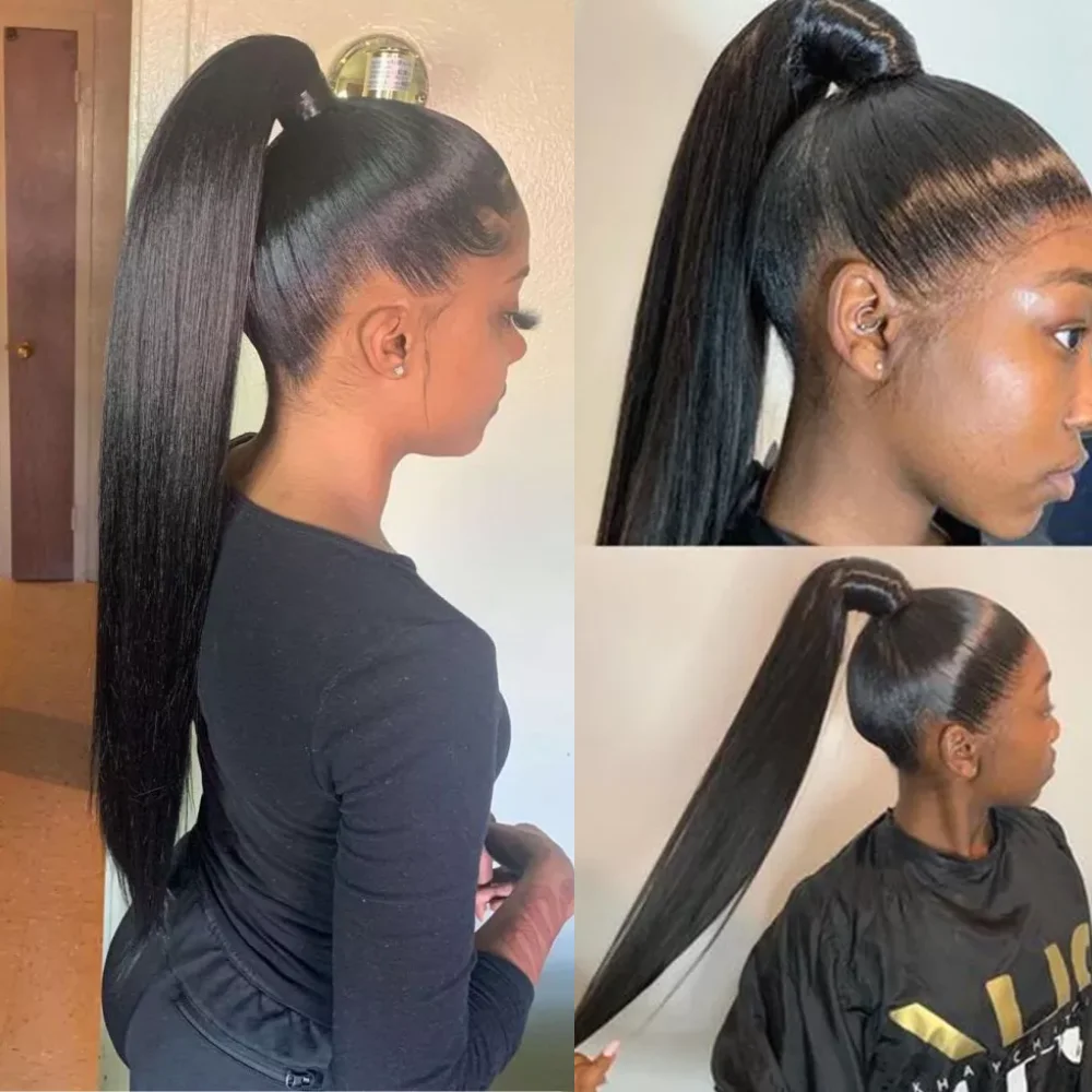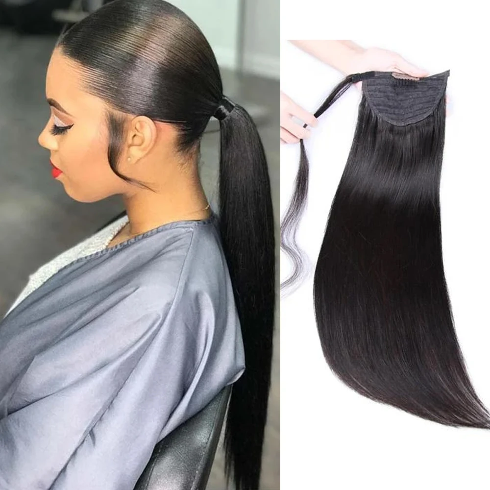 Сапфировый длинный прямой шнурок человеческие волосы конский хвост натуральный цвет Реми заколка для волос удлинение волос конский хвост для женщин