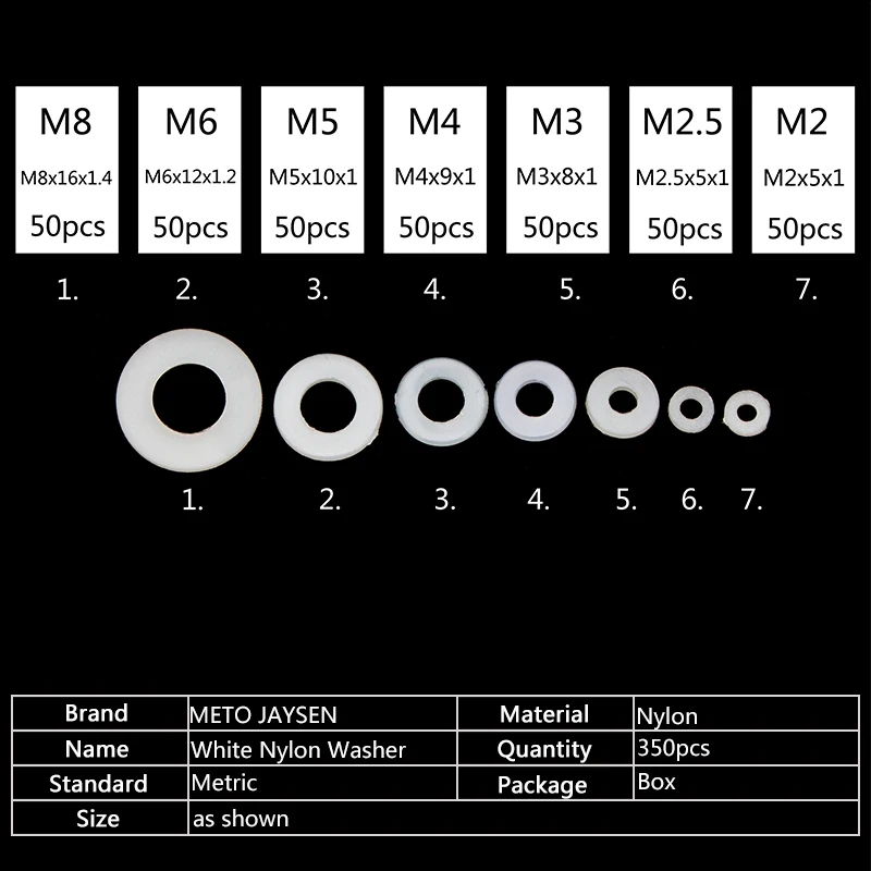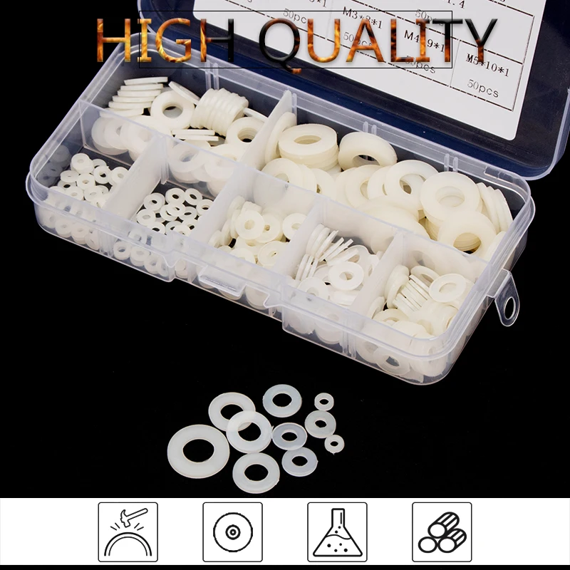 Белая нейлоновая шайба, плоская прокладка M2 M2, 5 M3 M4 M5 M6 M8, набор пластиковых уплотнительных колец, Защитная шайба M28NLB201, 350 шт.