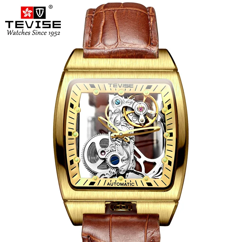 Мужские автоматические часы корпус прозрачный защитный чехол Для мужчин часы Винтаж Для мужчин Механические часы кожа золотые мужские часы коробка Новый