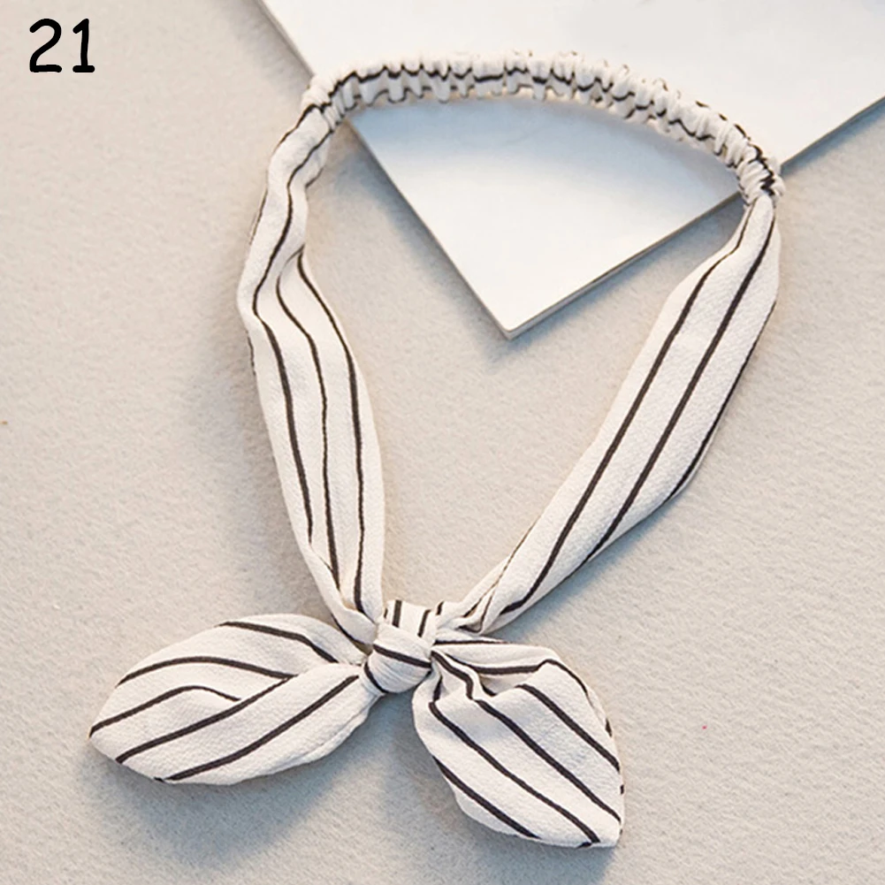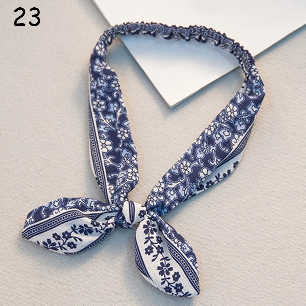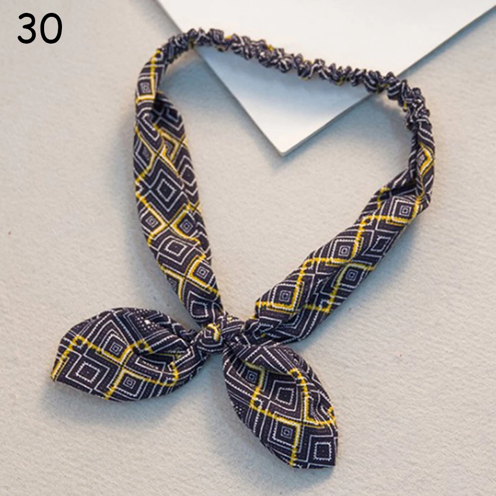 В стиле ретро; С бантом; С эластичной резинкой на Железная проволока, лента для волос с леопардовым принтом в полоску и в клетку Для женщин бандана ободок с кроличьими ушками для волос резинки для волос с цветочным рисунком, обтянутая тканью; Лидер продаж