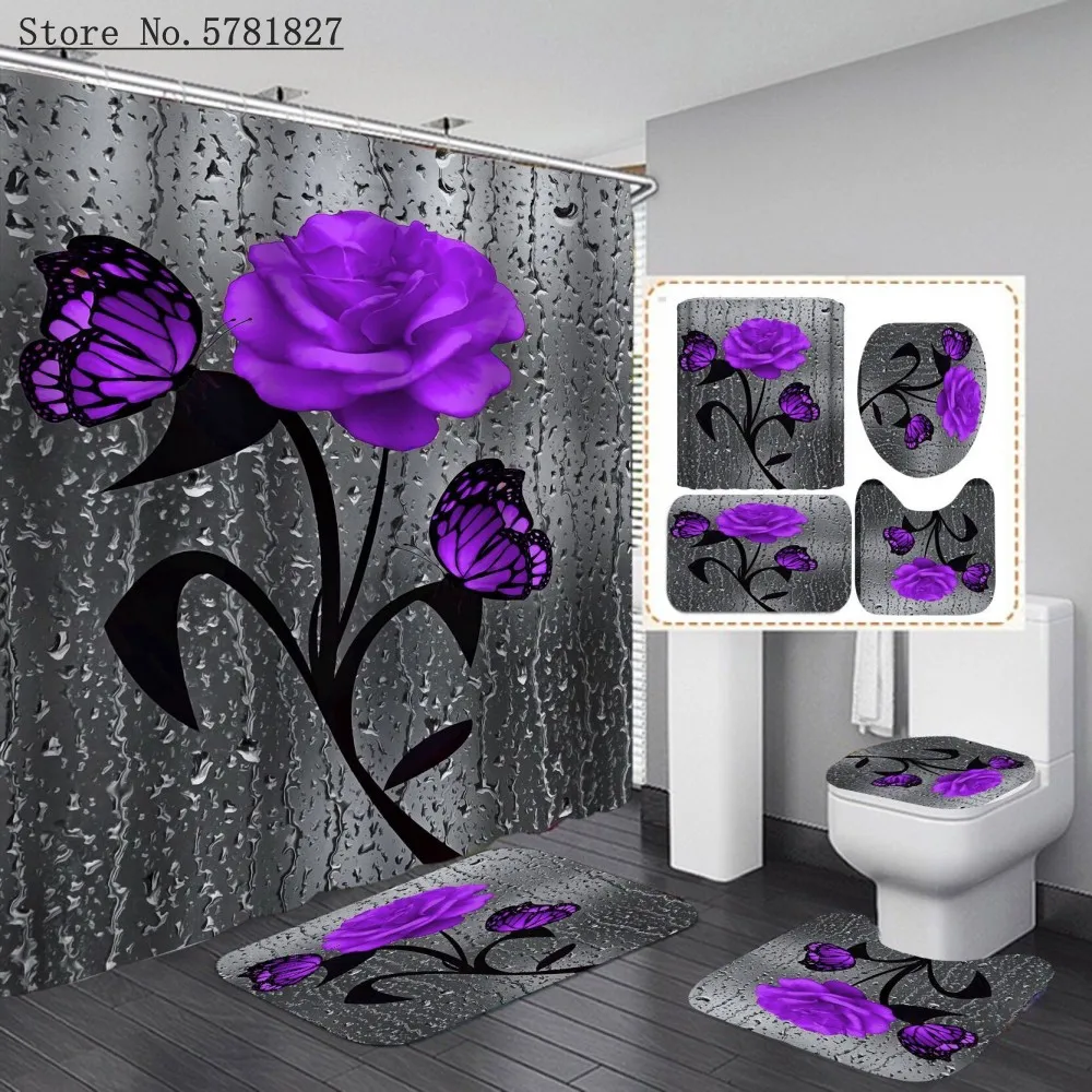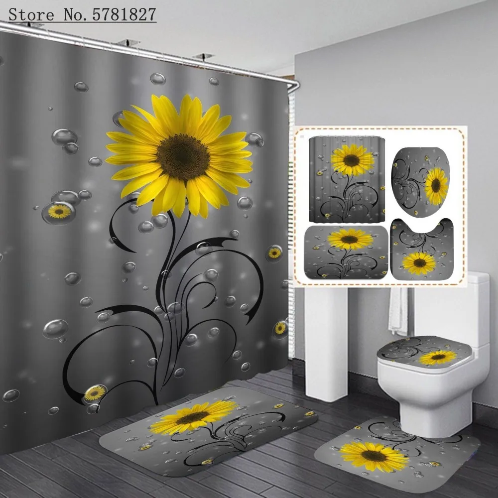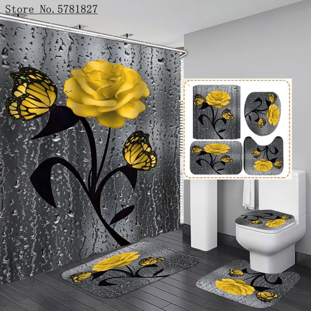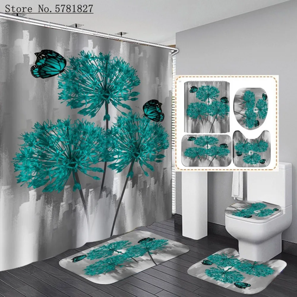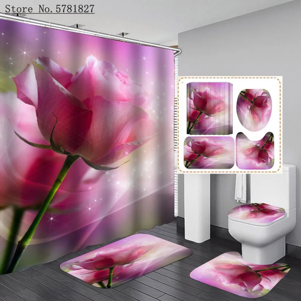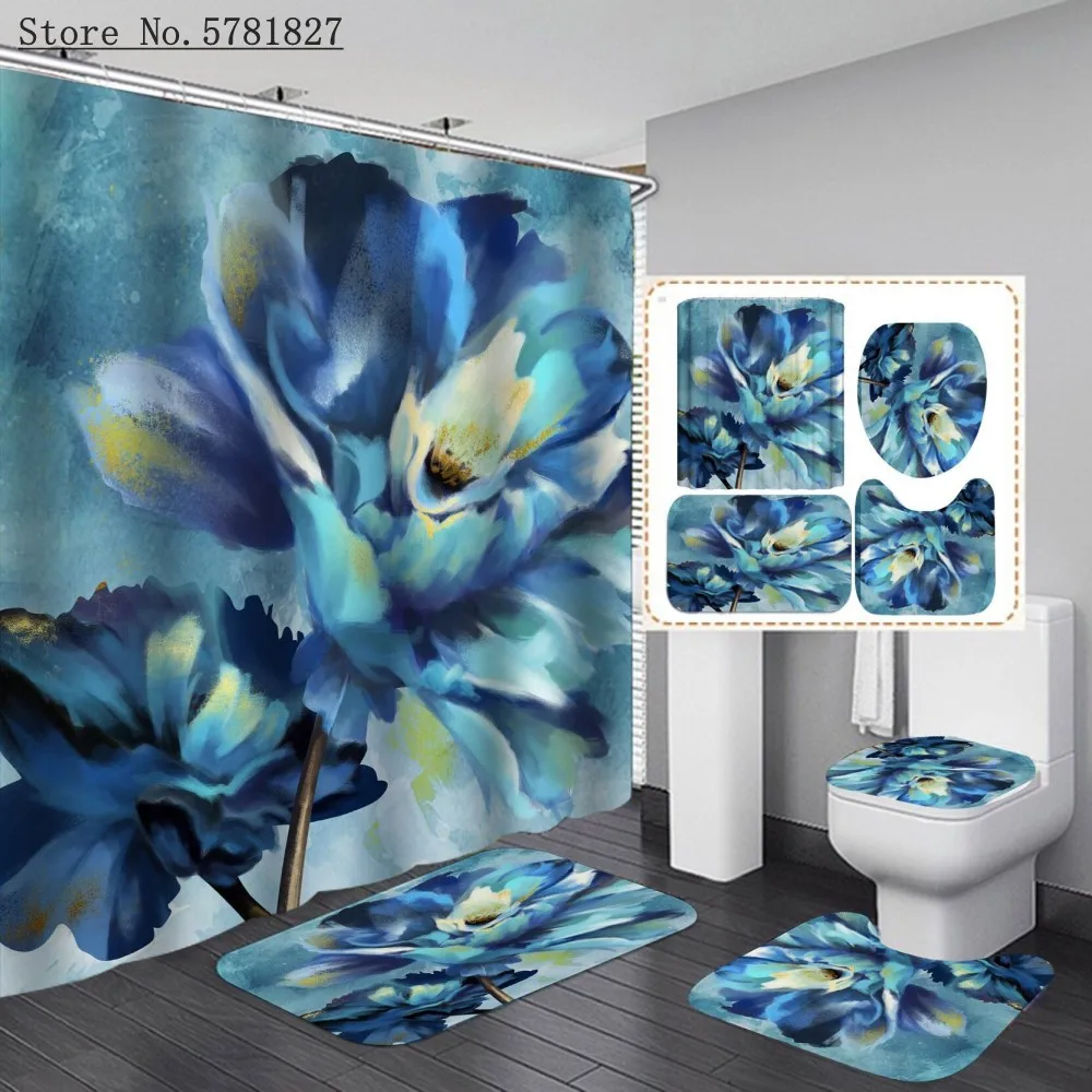 Занавеска для душа с цветами и 3D-принтом, 4 шт.