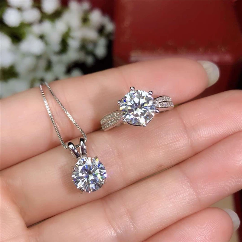 YANHUI 100% оригинальный 925 стерлингового серебряного цвета, обувь для невесты, набор украшений для женщин круглый 2.0ct 8 мм лаборатории кольцо с бриллиантом, колье, набор с ST006