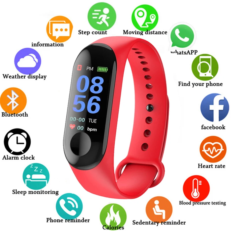 Фитнес-браслет M3 с цветным экраном, смарт-браслет для занятий спортом, бегом, трекером сердечного ритма для детей, мужские и женские часы, цифровые часы