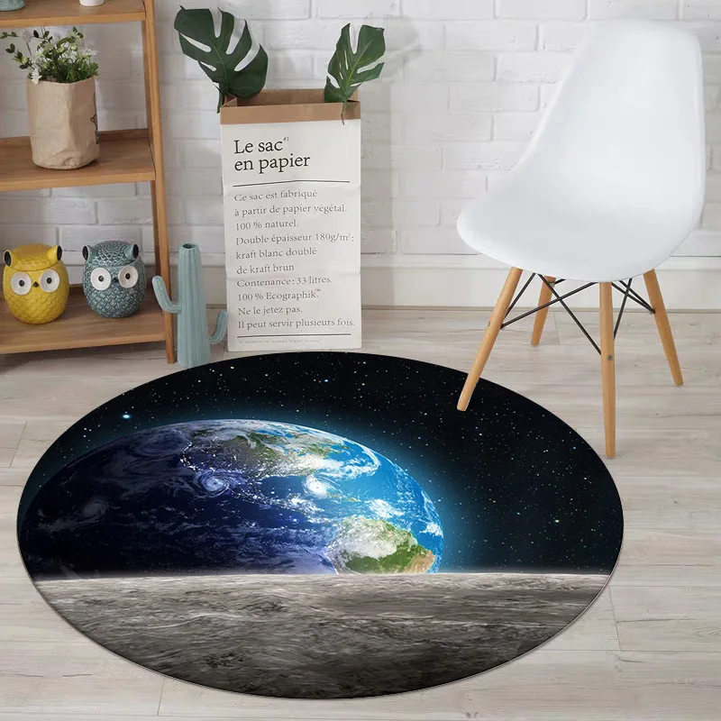 Круглый ковер с изображением земли Луны звезд Вселенной, напольный коврик для стула, мягкие коврики для гостиной, противоскользящий ковер, декоративный ковер для спальни
