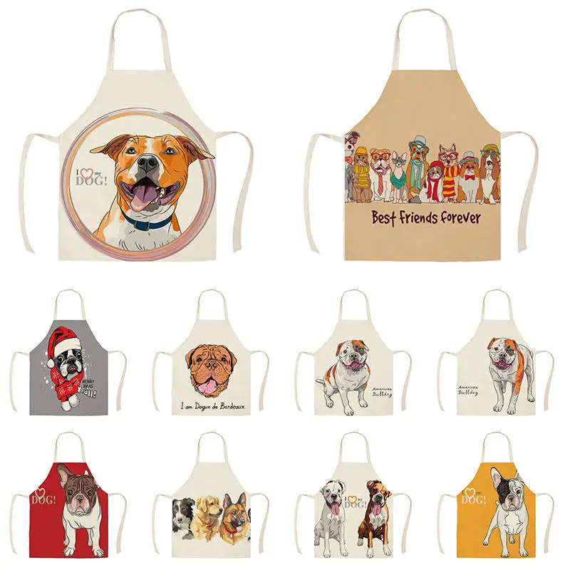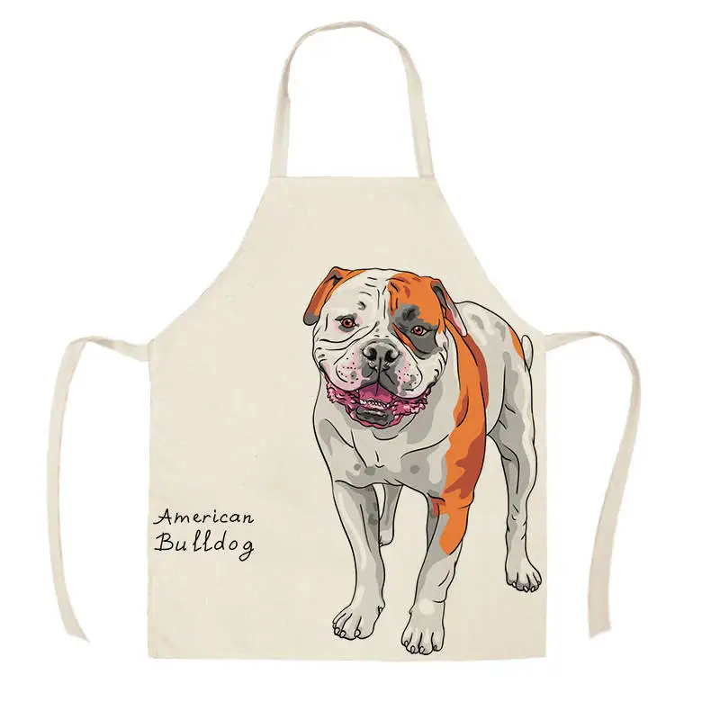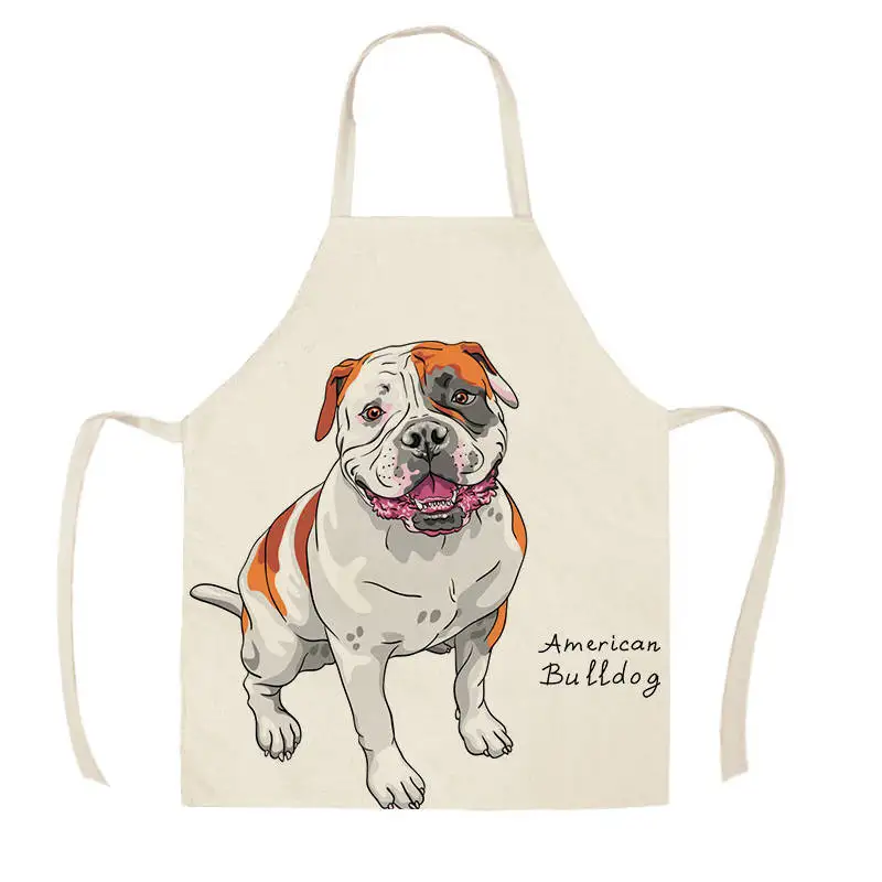 Льняные фартуки с принтом американского бульдога для мужчин, женщин, мужчин, 1 шт., инструменты для уборки дома WQ1155