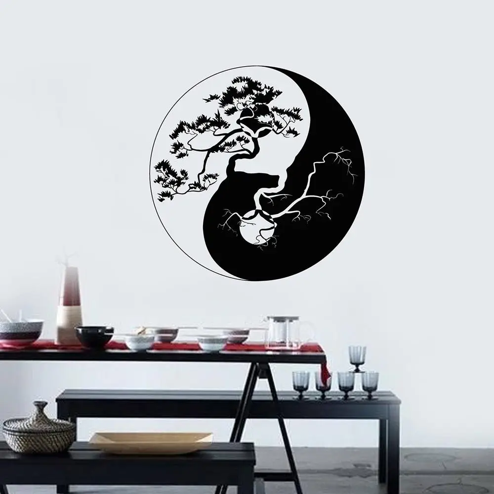 Виниловая наклейка на стену Инь Янь дзен философия дерева азиатские...