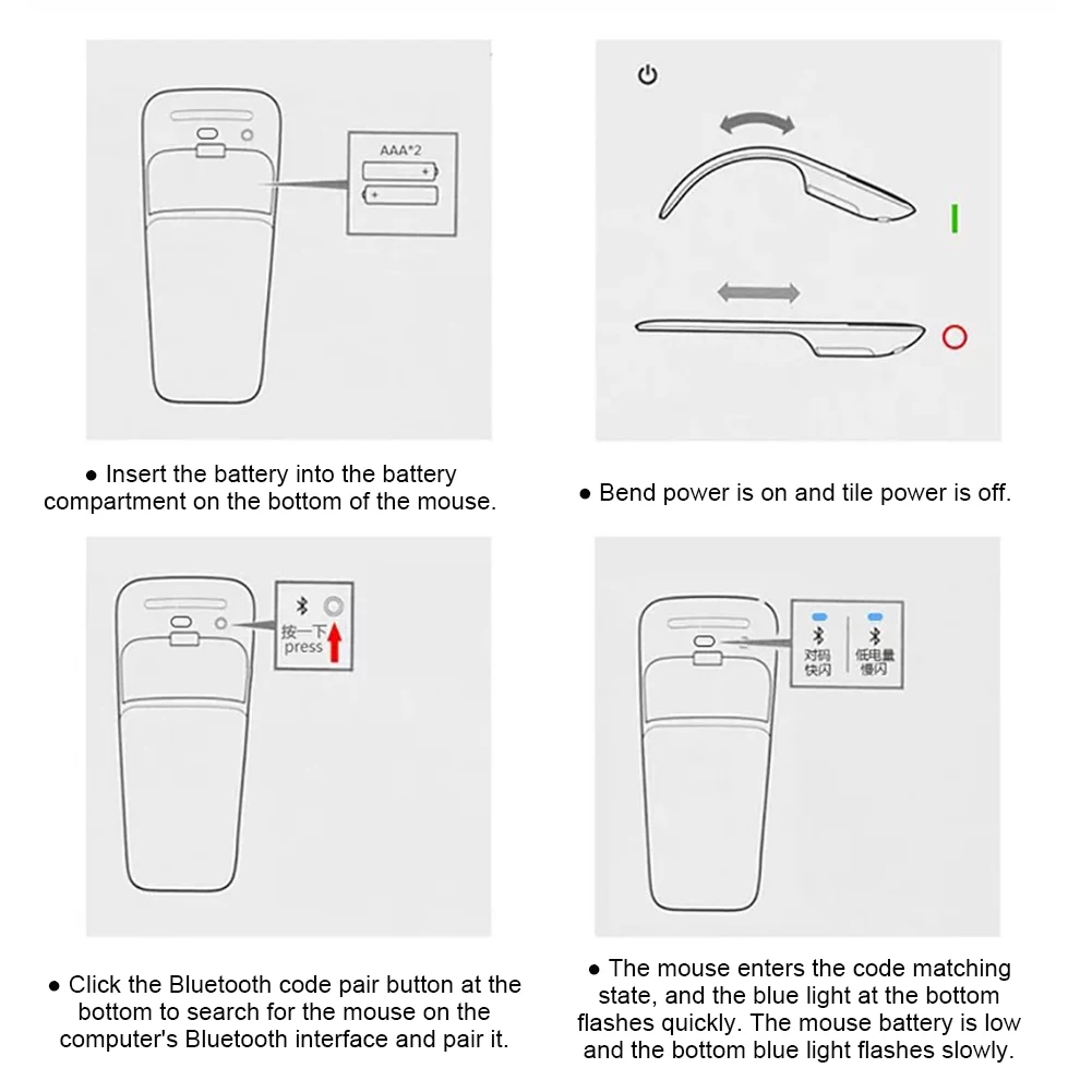 Беспроводная мышь CHYI Bluetooth 4,0, складная, с лазерной дугой, с...