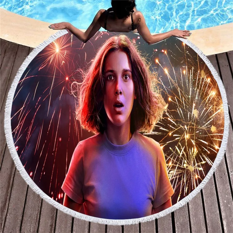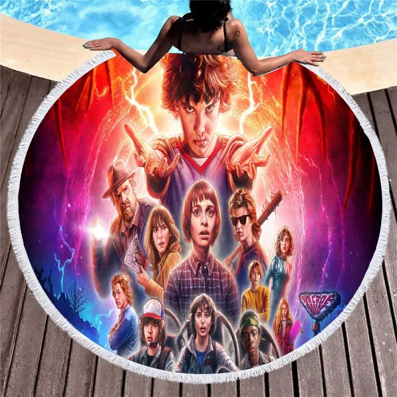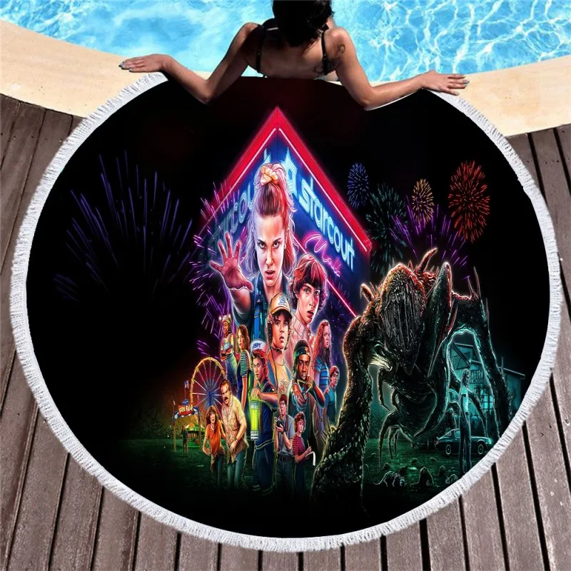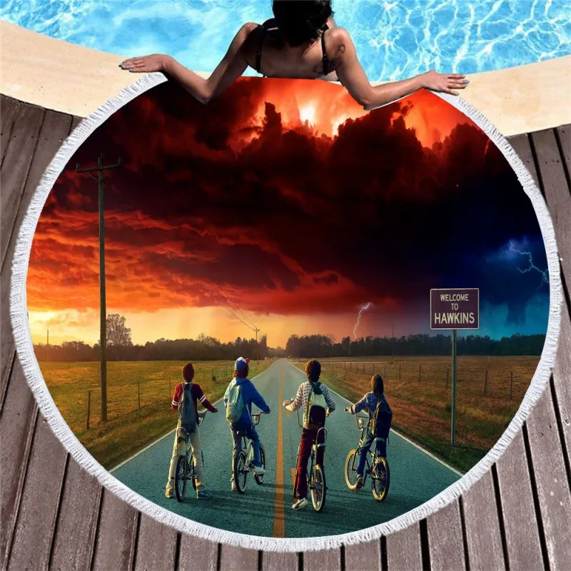Пользовательские странные вещи микрофибра пляжное полотенце Круглый Большой Йога полотенце с кисточкой пляжный коврик покрывало летнее Туристическое полотенце