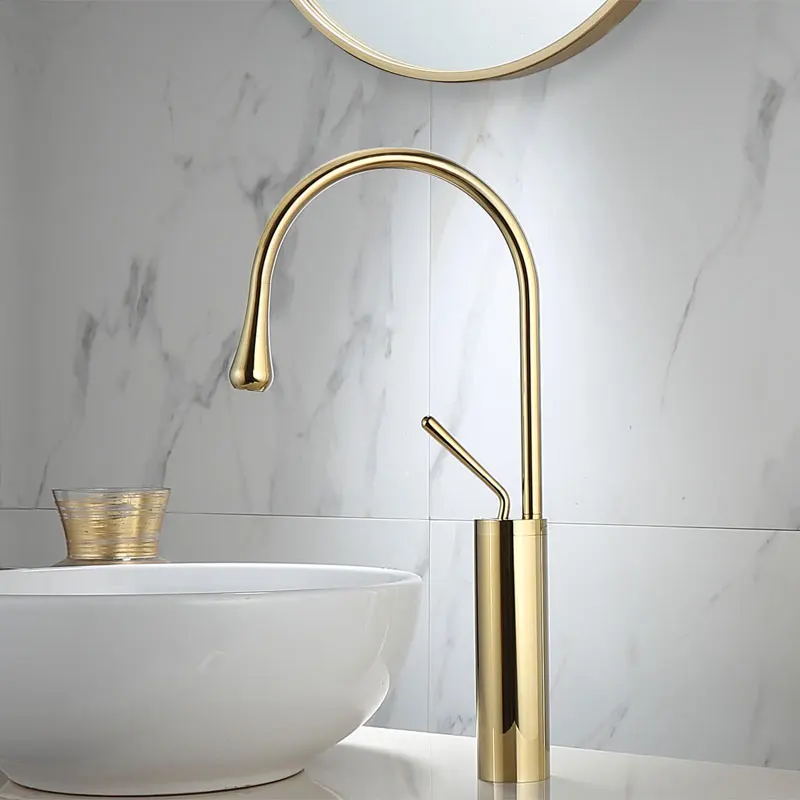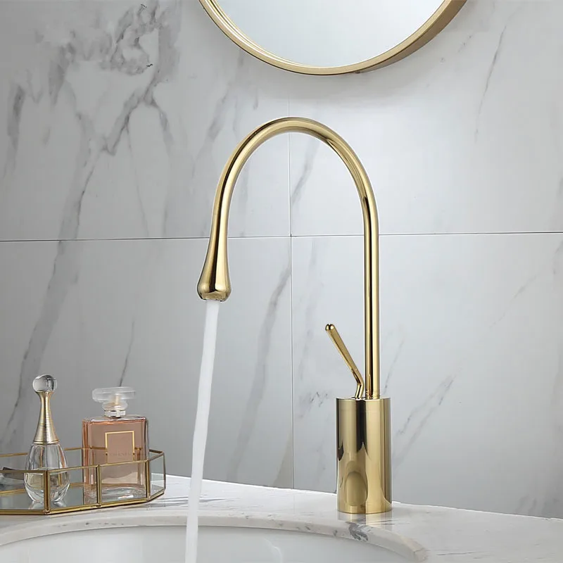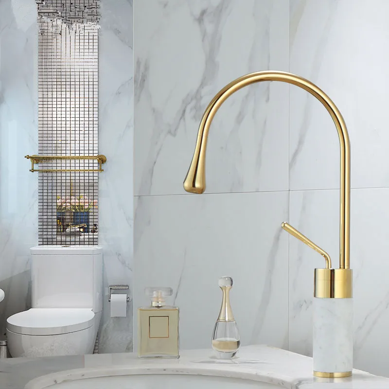Латунный Смеситель для раковины, поворотный кран под золото и мрамор, одна ручка, крепление на раковину