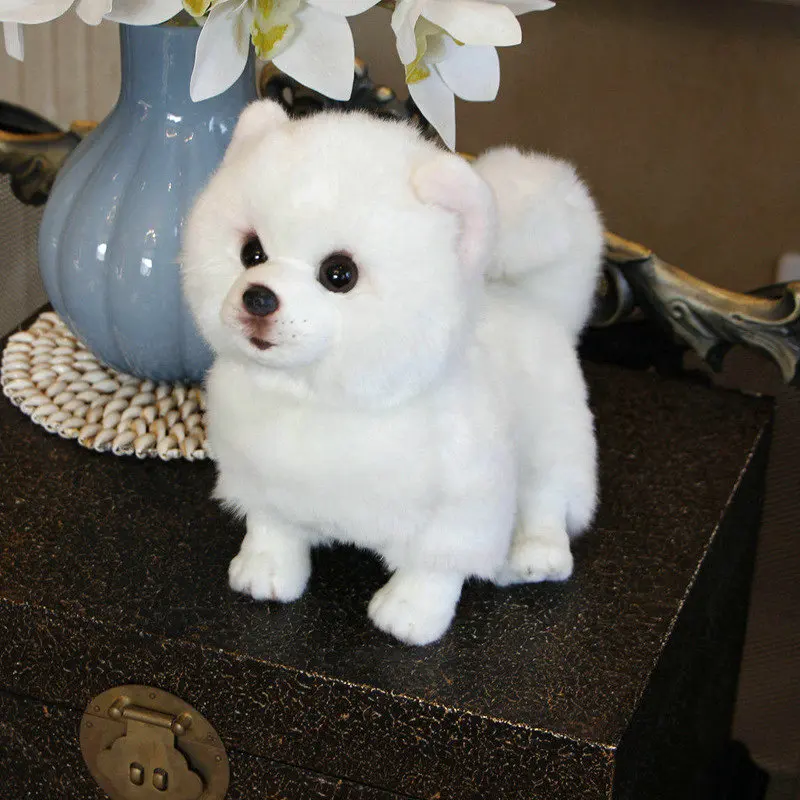 Плюшевая Померанская кукла для собак, имитация собаки, мягкие игрушки для животных, Супер реалистичная игрушка для домашних животных, Роскошный домашний декор, Белоснежка