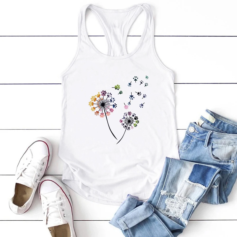 Хроматические, принт в виде одуванчиков, кошачьей лапки принт женские майки, топы, летняя Графический жилет Сексуальная майка без рукавов женские Camiseta Tirantes Mujer