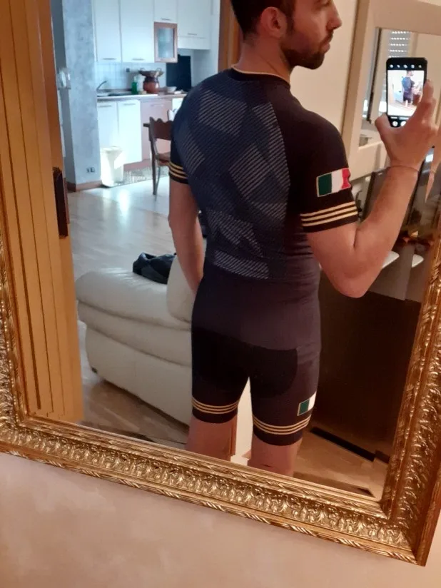 В целом это отличный продукт. Имейте в виду, что шорты и Джерси не разделены. Это цельный костюм. Размер был более или менее близок к европейским шкалам. Качество подушечек для сидений в шортах очень хорошее. Желтая гелевая подкладка как на картинке. Есть несколько стежков, торчащих в костюме, но за указанную цену это нормально! Пожалуйста, напишите мне, если у вас есть вопросы или Вам нужно больше фотографий. Ciao!