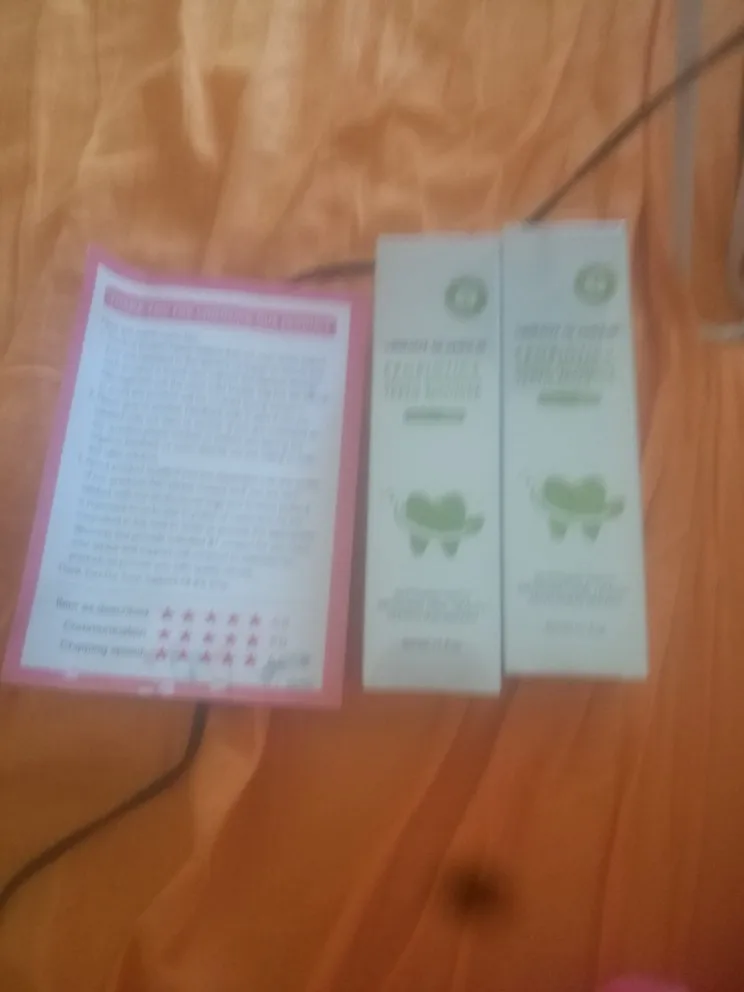 Прибыл сюда всего за три недели, это отлично! Я запросил три единицы, и вы отправили шесть! Это невероятно, большое спасибо! Я попробовал его только один раз, промывая рот, и он очень освежающий, мятный вкус и запах из него отличные! Придется почистить его и проверить, является ли он эффективным в отбеливании зубов с течением времени, чтобы оценить его эффективность, но до сих пор это здорово! Еще раз большое спасибо!