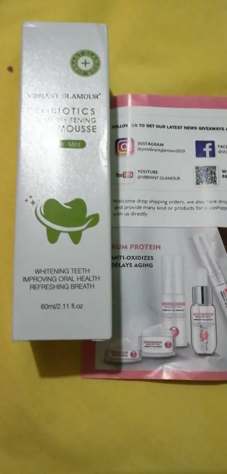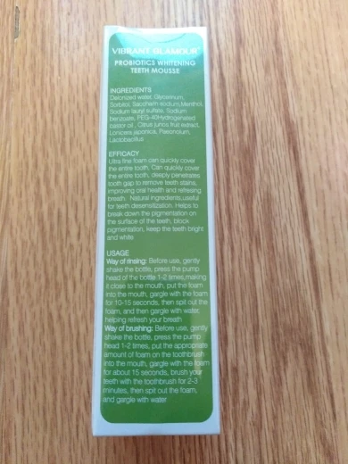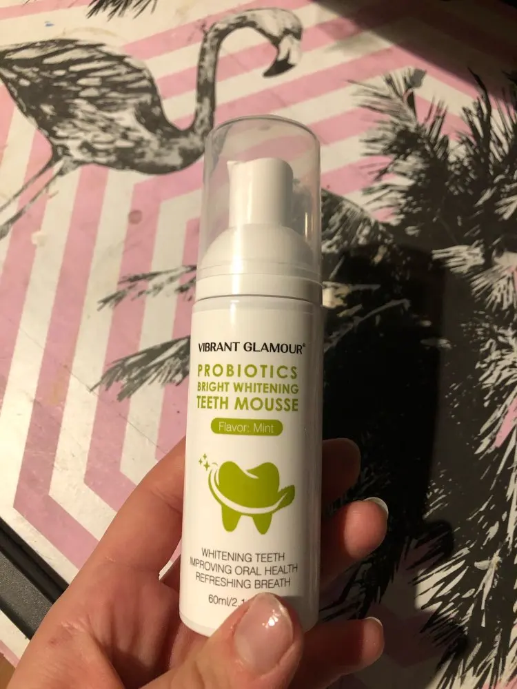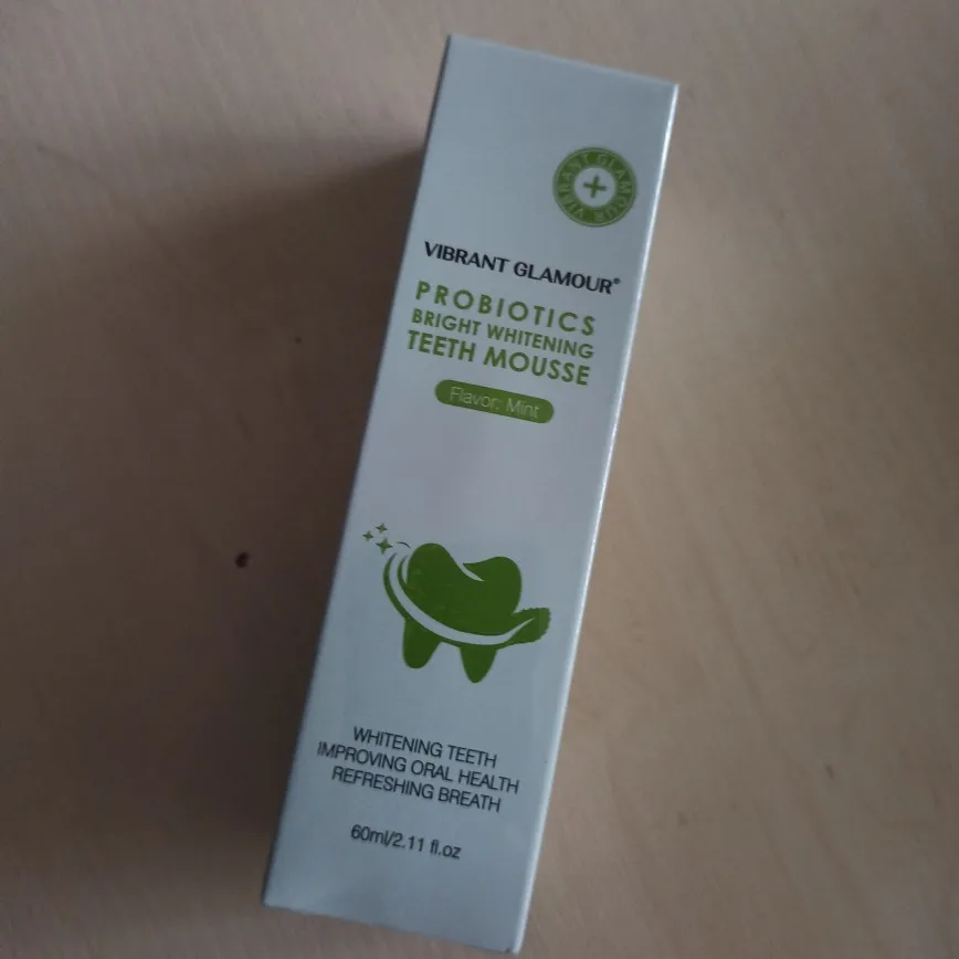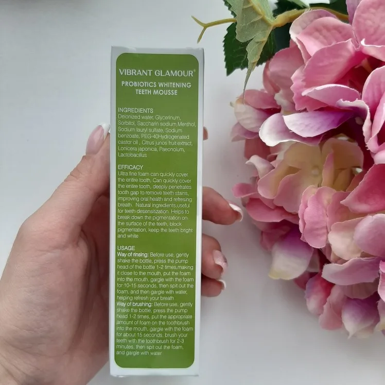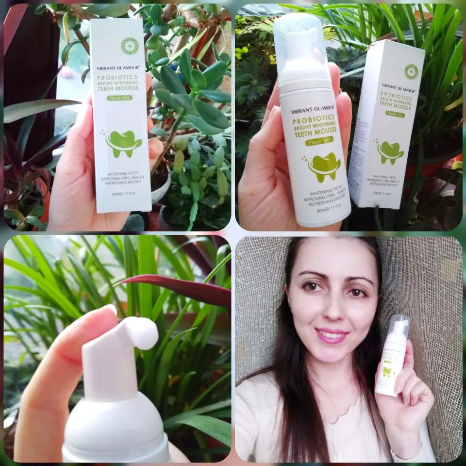 Пена для отбеливания зубов Вес-60мл Срок годности 3 года до 2023 года. В состав входит-ментол глицерин, лактобактерии и.т.д. Как использовать? Можно просто выдавить на щетку и почистить зубы 2 минуты.Второй вариант использования-выдавить пену в рот и прополоскать 15 секунд, сплюнуть и прополоскать рот теплой водой. Очень ментоловый. По консистенции-пена белого цвета. Улучшает микрофлору рта за счёт пробиотиков. Хорошо очищает налет, освежает,делает зубы белее на тон за пару дней использования. Нет аллергии. Доставка 10 дней службой Мист Експресс в Украину.Рекомендую!